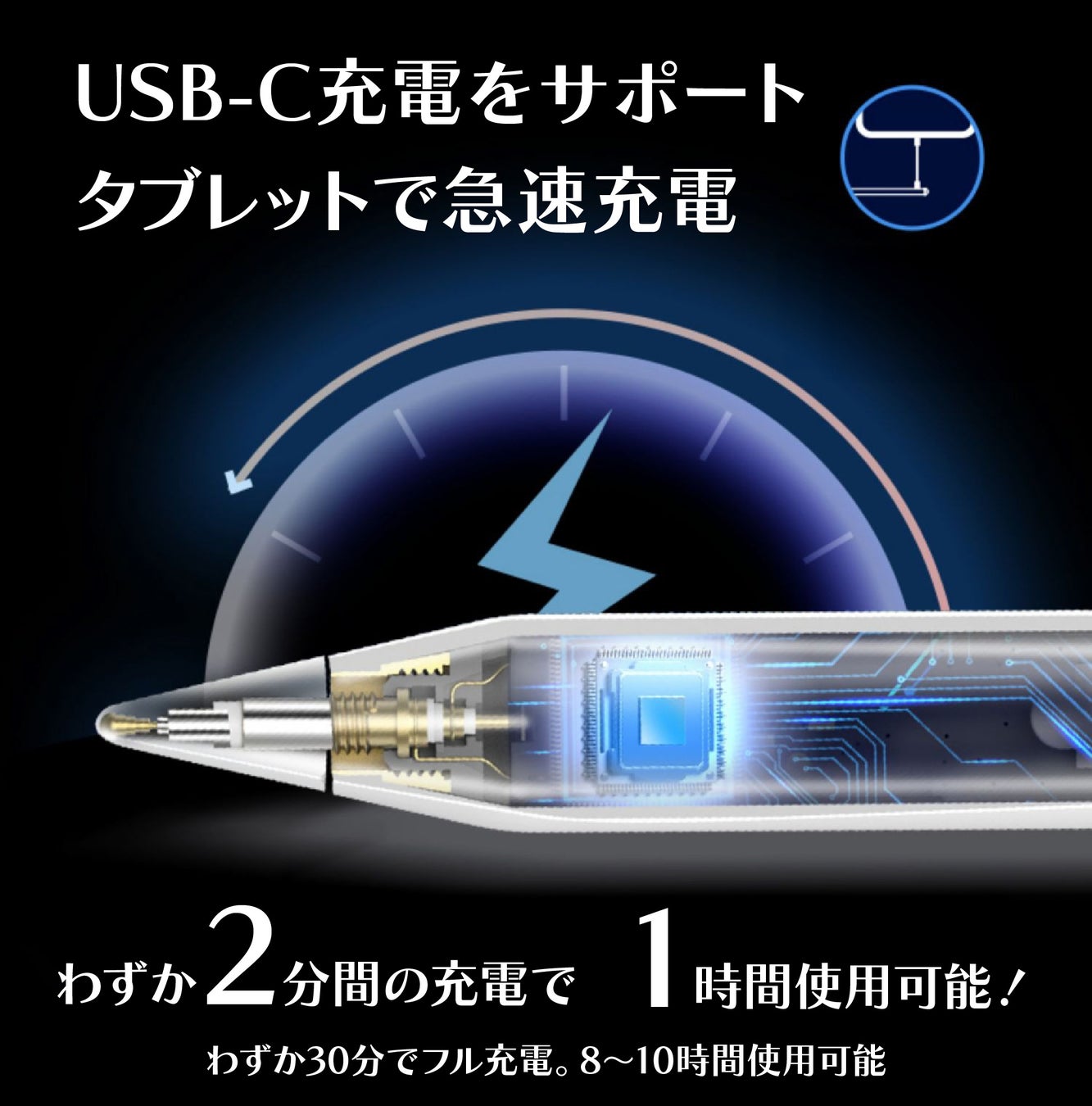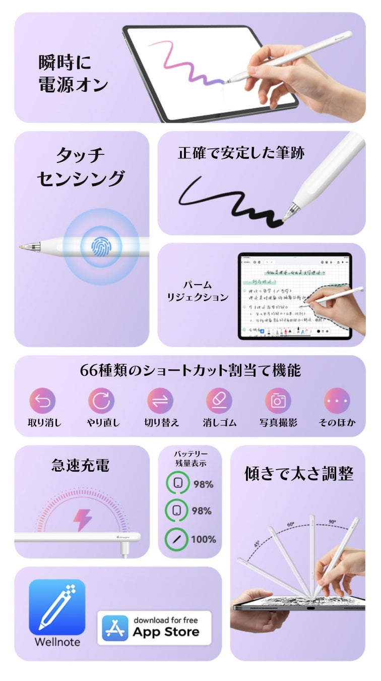 【iPad・iPad Air・iPad mini・iPad Pro対応/傾きセンサー/USB-C 急速充電/マグネット吸着/ペン先交換可/専用アプリ】