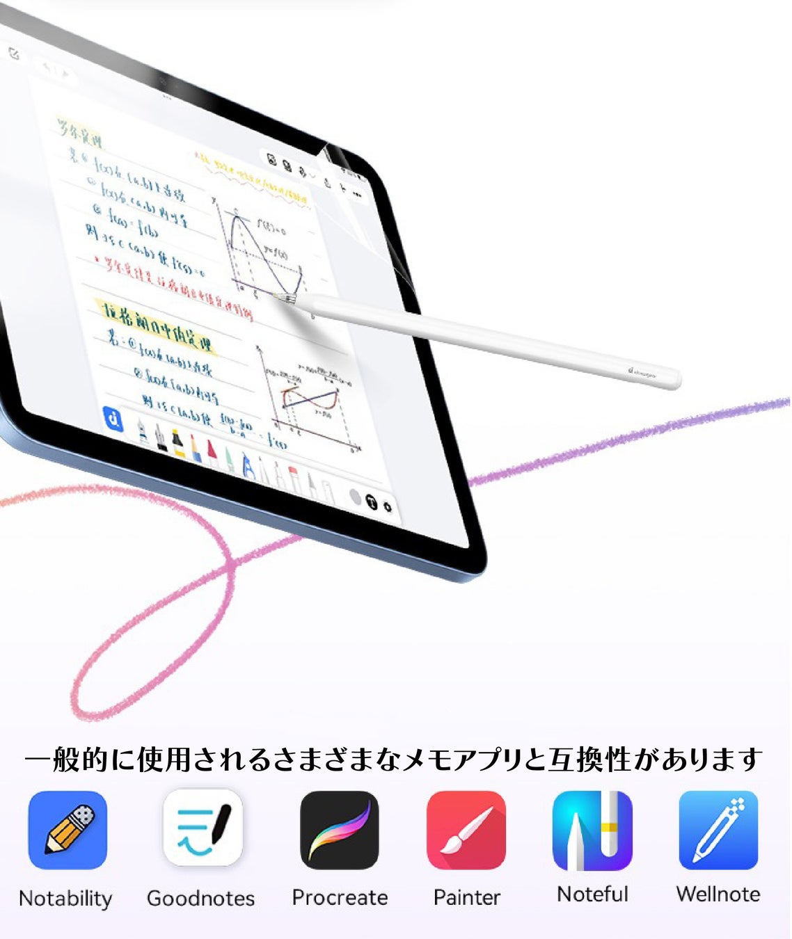 世界的に人気のメモアプリ、イラストアプリなど幅広く互換性があります。