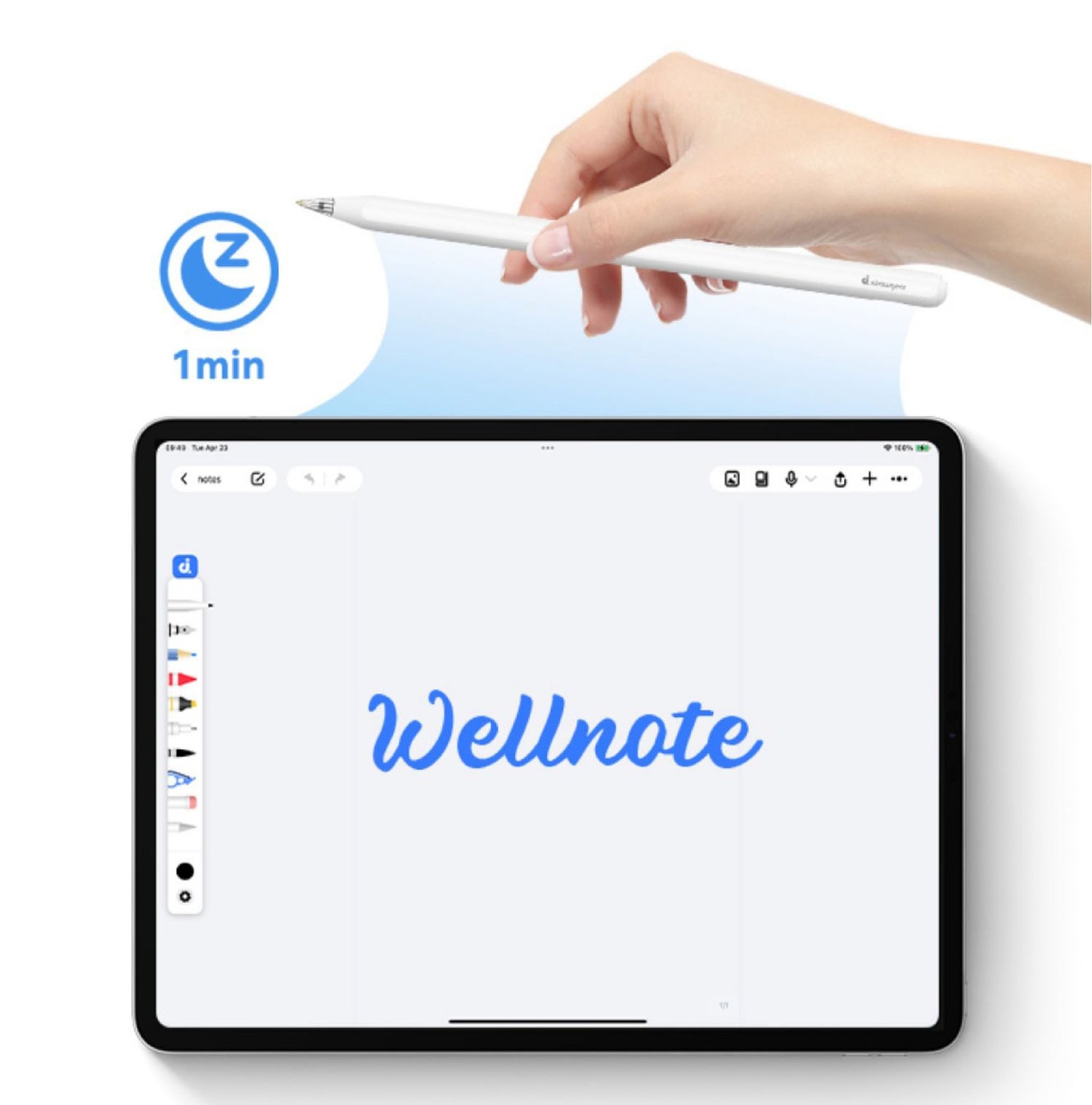 勉強に疲れたら休憩して、ペンをそのままにするか、iPadに磁石でくっつけて1分間放置してください。