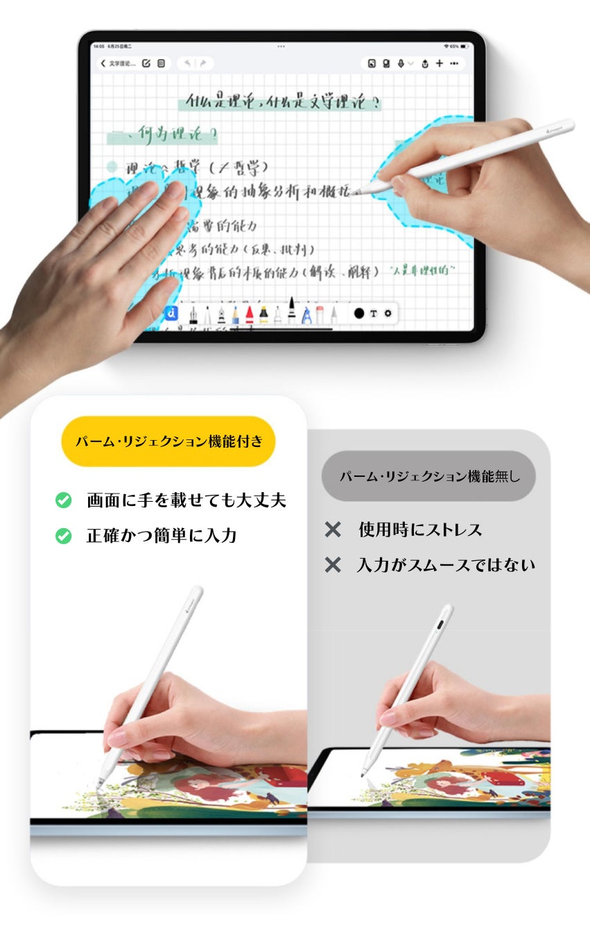 ●パーム・リジェクション対応で誤入力を防ぐ
