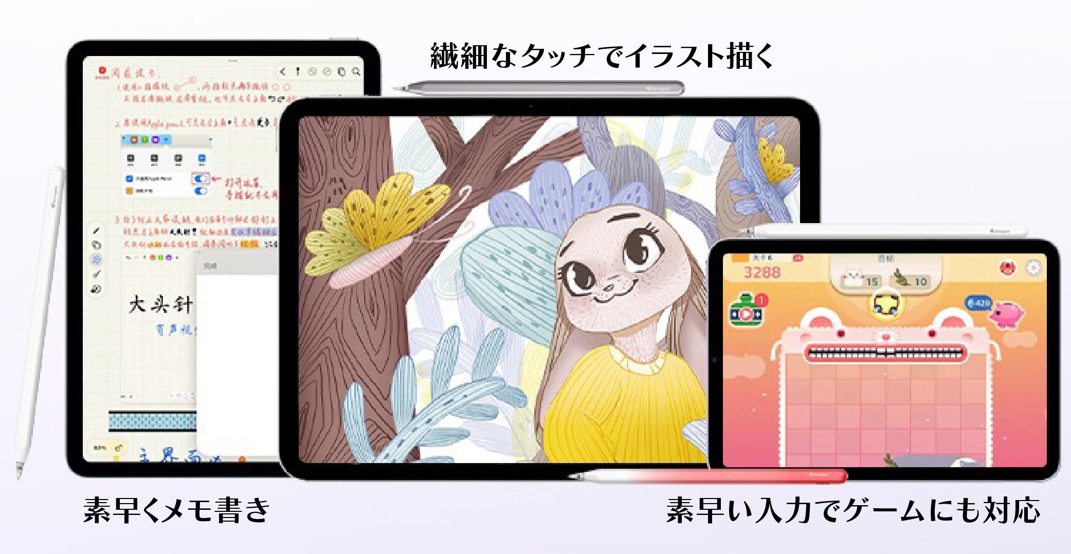 イラストを描く際の繊細なタッチを正確にiPadに伝えます。