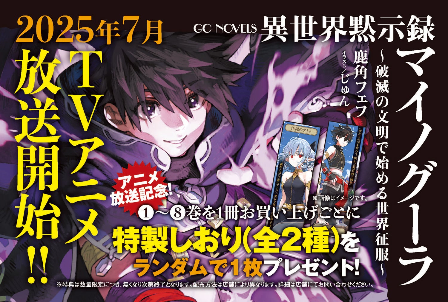 アニメ放送間近の話題作!GCノベルズ『異世界黙示録マイノグーラ~破滅の文明で始める世界征服~ 8』6月30日発売!アニメ化記念フェアも開催!
