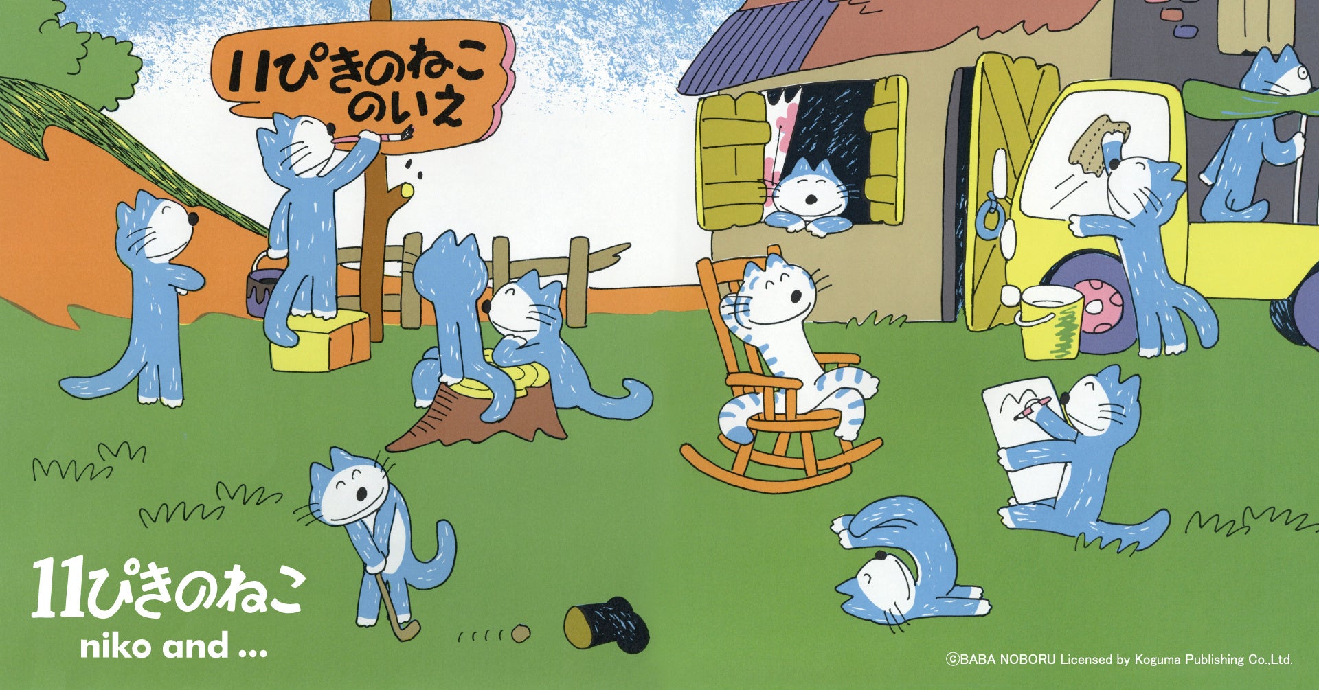 「niko and ...」は、ブランドが掲げる“uni9ue senses”(衣・食・住・遊・知・健・旅・音・LOCAL)の9つの要素を通して、ユニークなモノやコトを提案する企画を展開しています。馬場のぼる氏によるロングセラー絵本「11ぴきのねこ」シリーズは、とらねこ大将ひきいる11ぴきのねこたちの冒険の物語です。愉快なストーリーは、いつの時代も子どもたちを魅了し、1967年刊行以来、3世代に渡って読み継がれてきました。