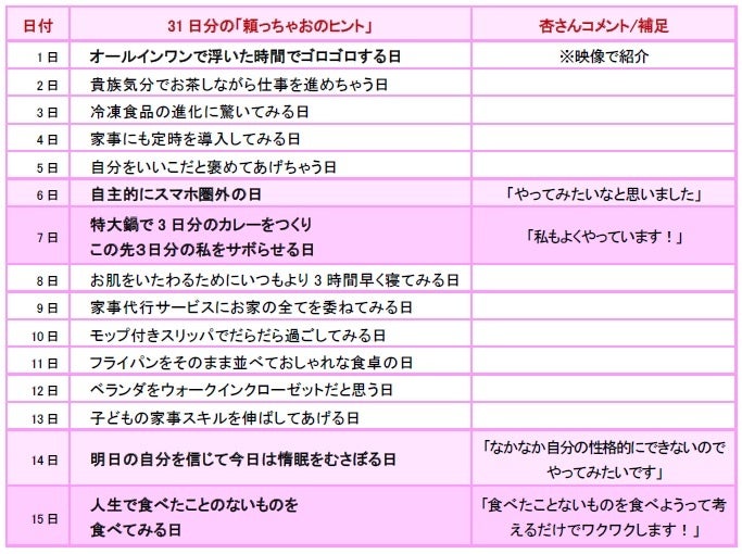 ~毎日が小さな休日に! ギュッと頼れる31日分のうれしいアイテムをプレゼント~