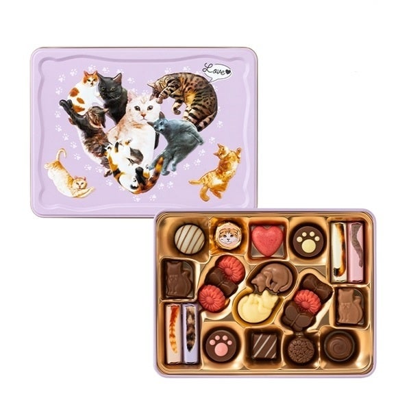 丸まってお昼寝する猫や肉球など、かわいらしいチョコが詰まったアソート。