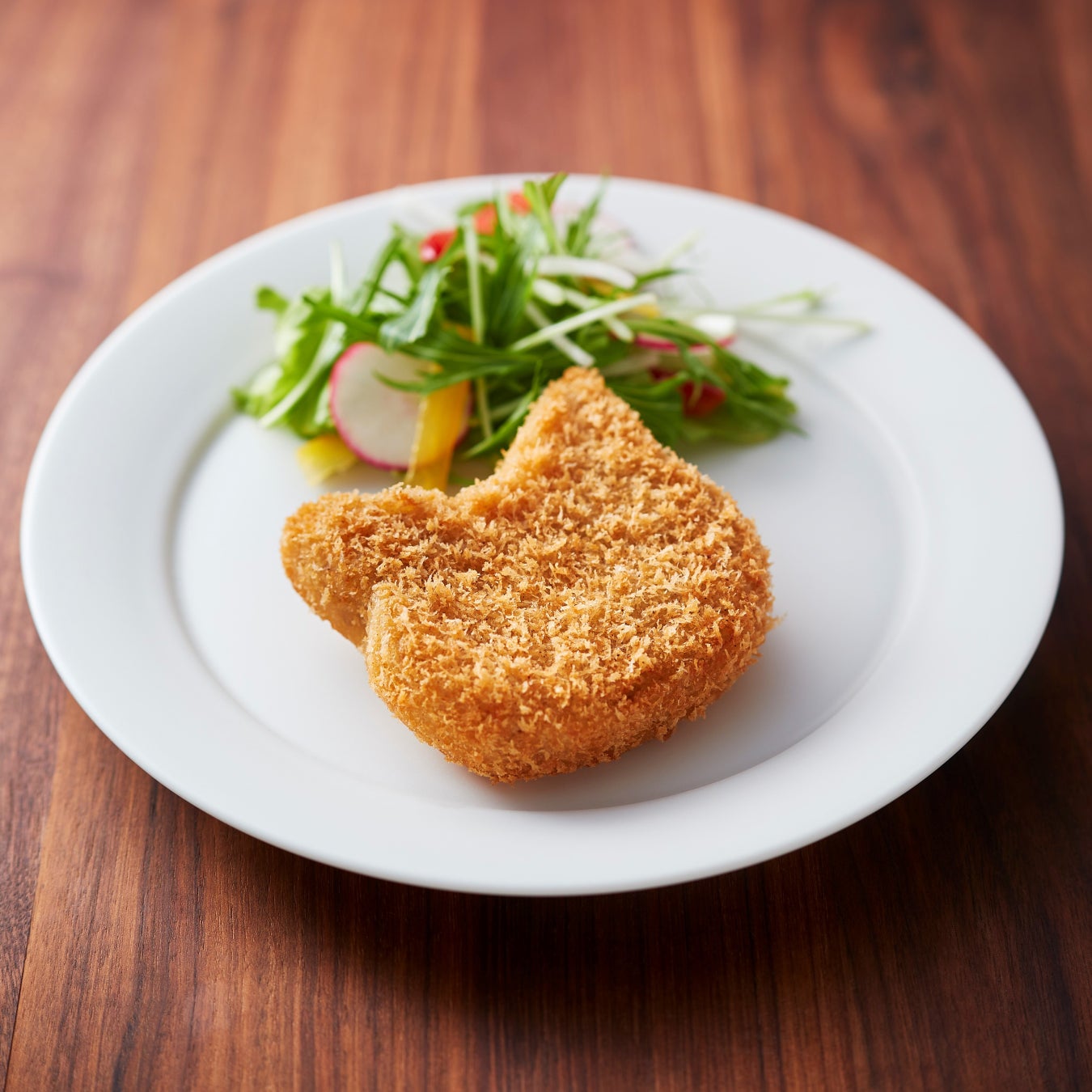 猫型が愛らしいポテトコロッケ。細切りポテトにベーコンの旨みを合わせた、お子さまでも食べやすい味わい。