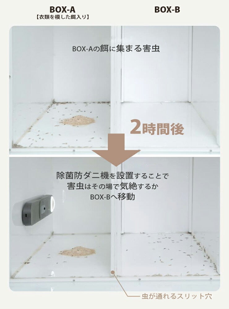 これ一台で、ダニ、虫食い、白カビ、悪臭など、クローゼットの衣類に迫る様々な敵をガードします。