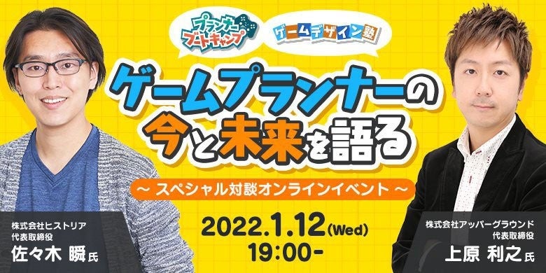 1/12(水)オンラインスペシャル対談「ゲームプランナーの今と未来を語る」㈱ヒストリア佐々木氏 × ㈱アッパーグラウンド上原氏