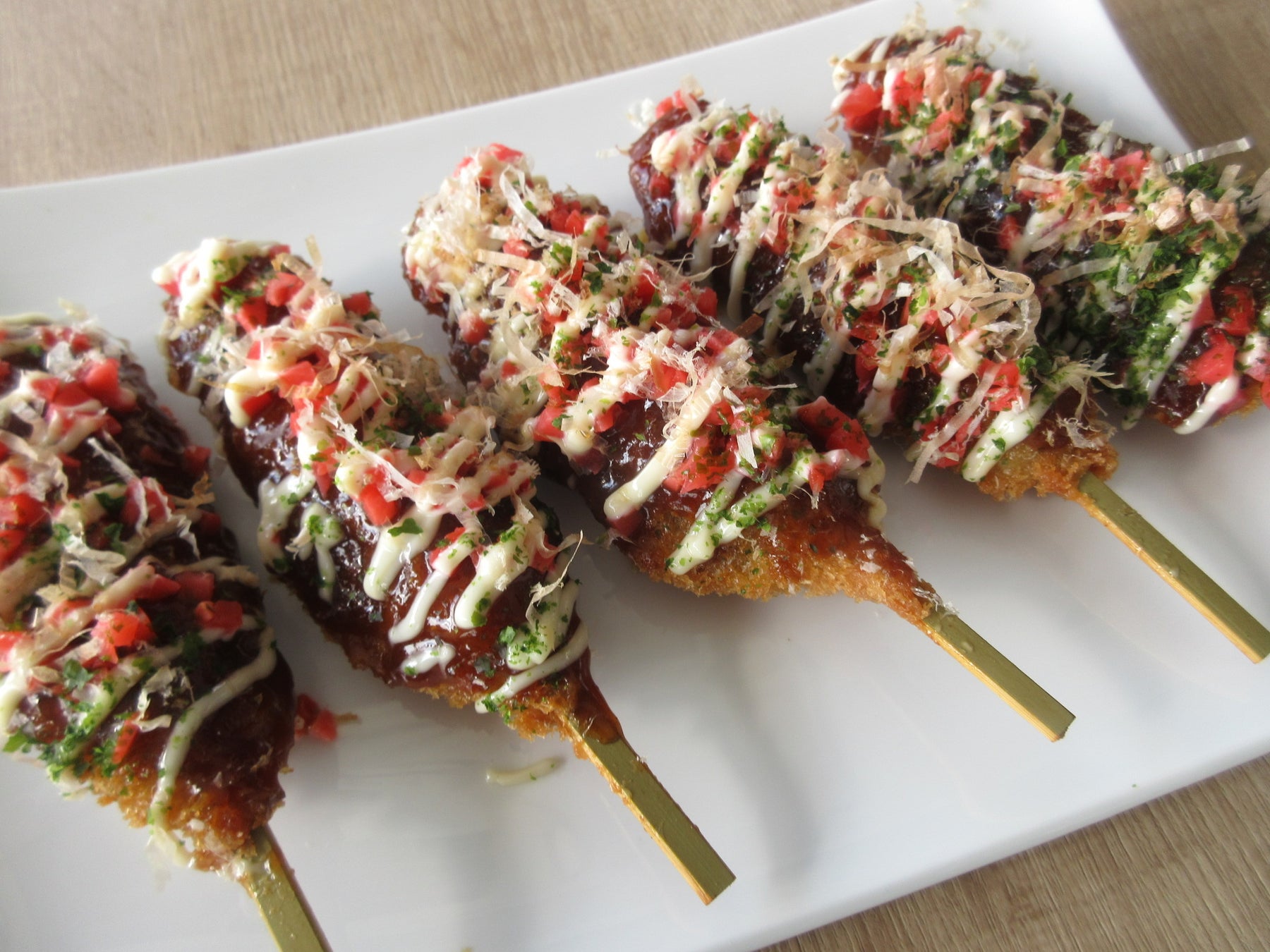 選りすぐりの名古屋コーチンを使った串カツを、お好み焼き風にデコレーション。見た目も味もインパクト大な大阪みやげをお見逃しなく。