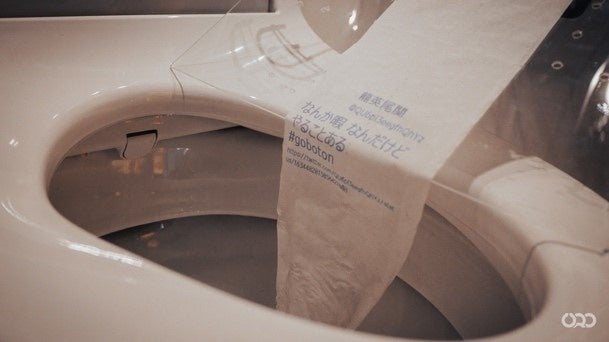 水に流したい言葉をトイレットペーパーに印刷しトイレに流すことができる。現代は言葉を発信するツールが増えすぎたことにより、正確性に欠けた言葉が拡散したりなど言葉が氾濫しすぎている。そんな自分にとって不要な言葉たちや思いついてやり場のなくなったくだらない言葉などを水に流す機会を提供。上野、表参道、新潟など全国各地で展示を行なっている。