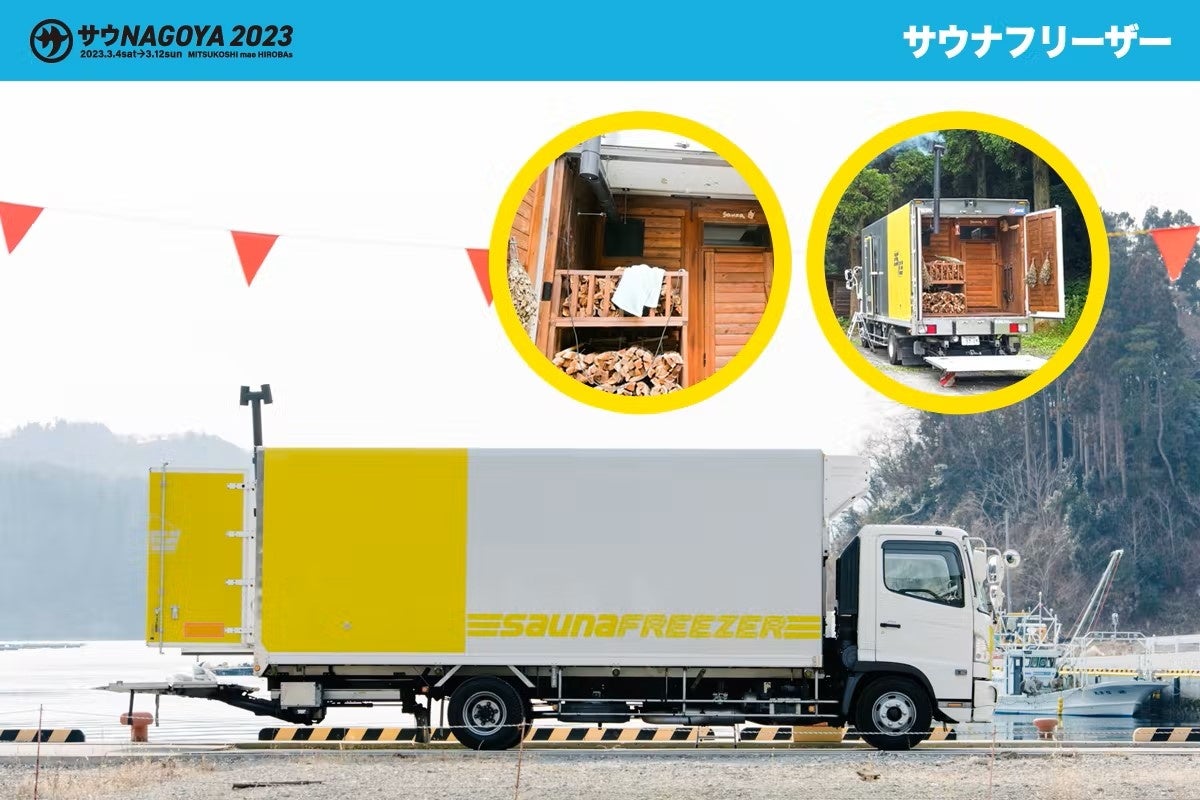 「名古屋の中心で、ととのう」をコンセプトに、東海エリア最大の繫華街 栄のド真ん中「MITSUKOSHI mae HIROBAs(ミツコシマエ ヒロバス)」に、引退した路線バスをサウナに改造した「サバス」と、4トントラックの冷凍車をサウナとアイスサウナに改造した「サウナフリーザー」が登場!