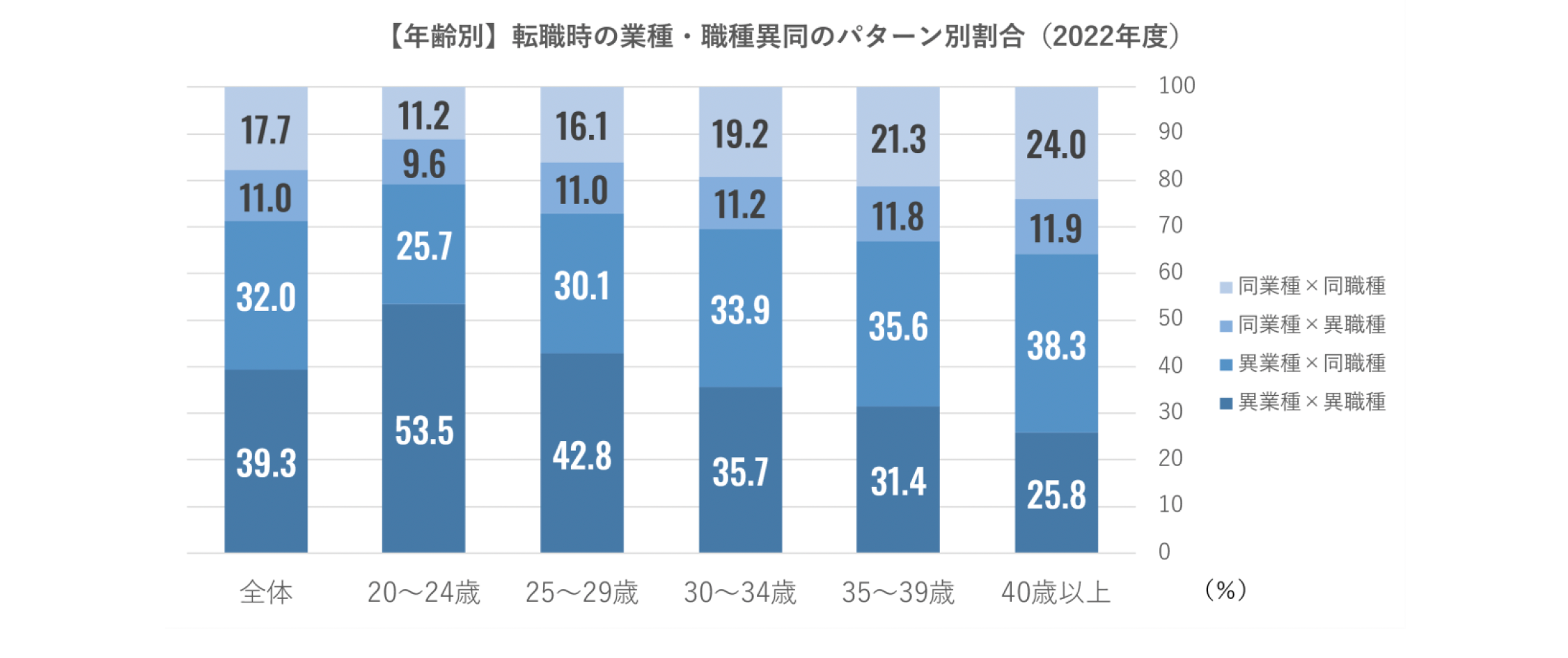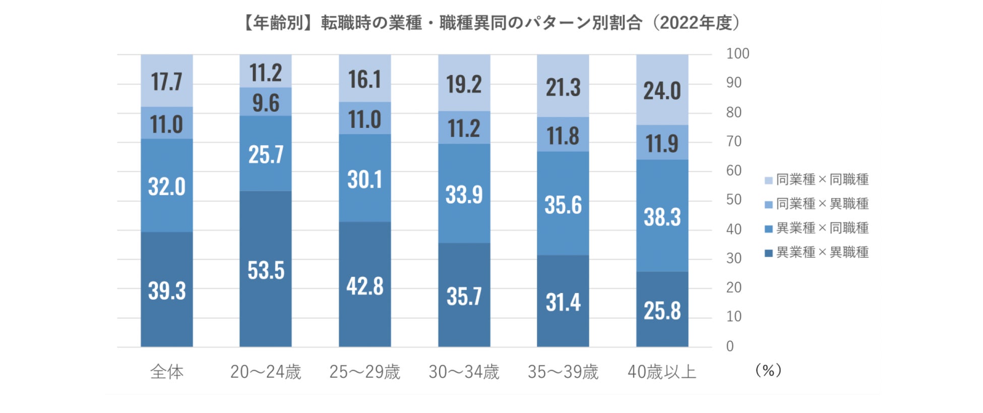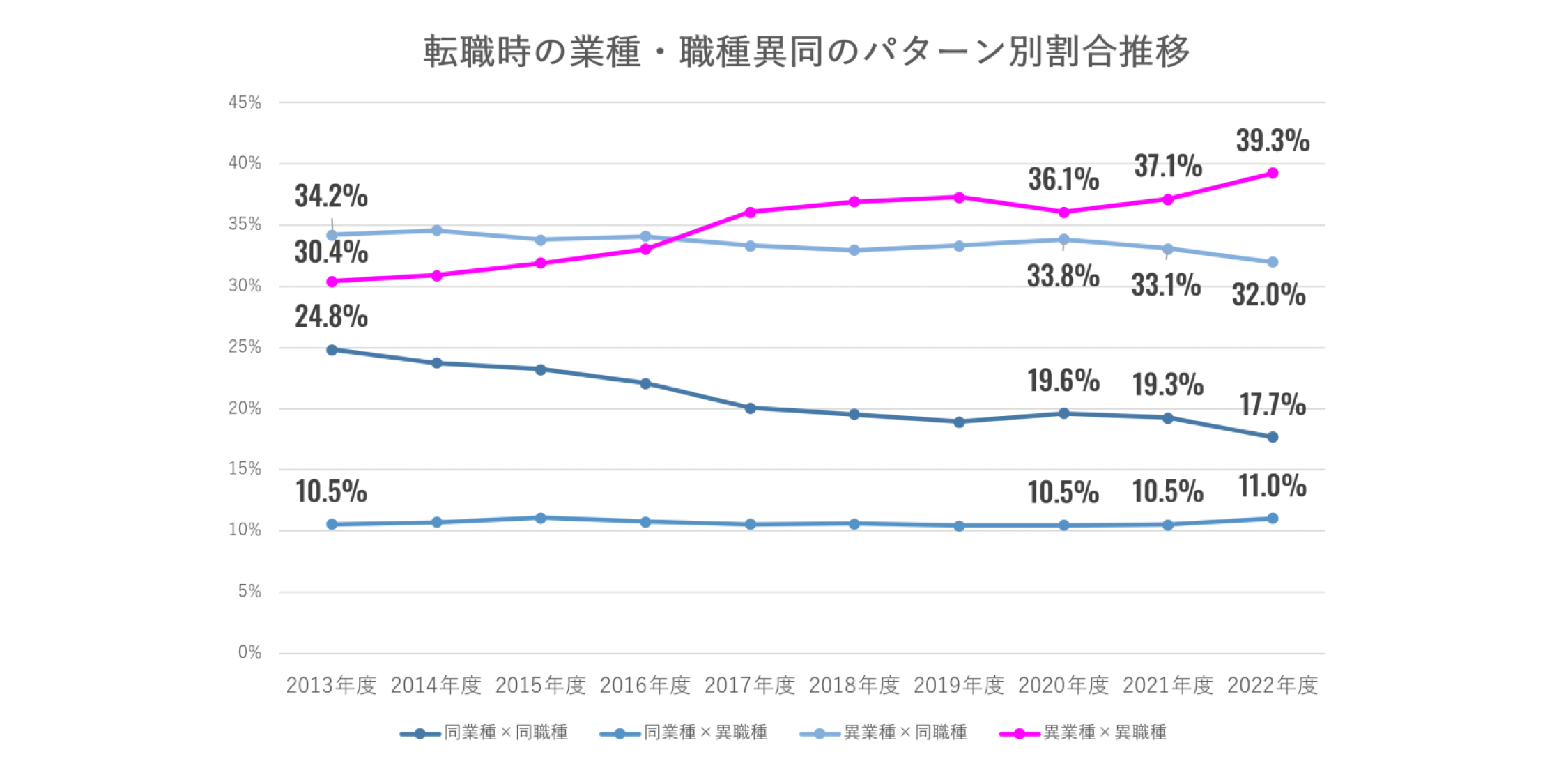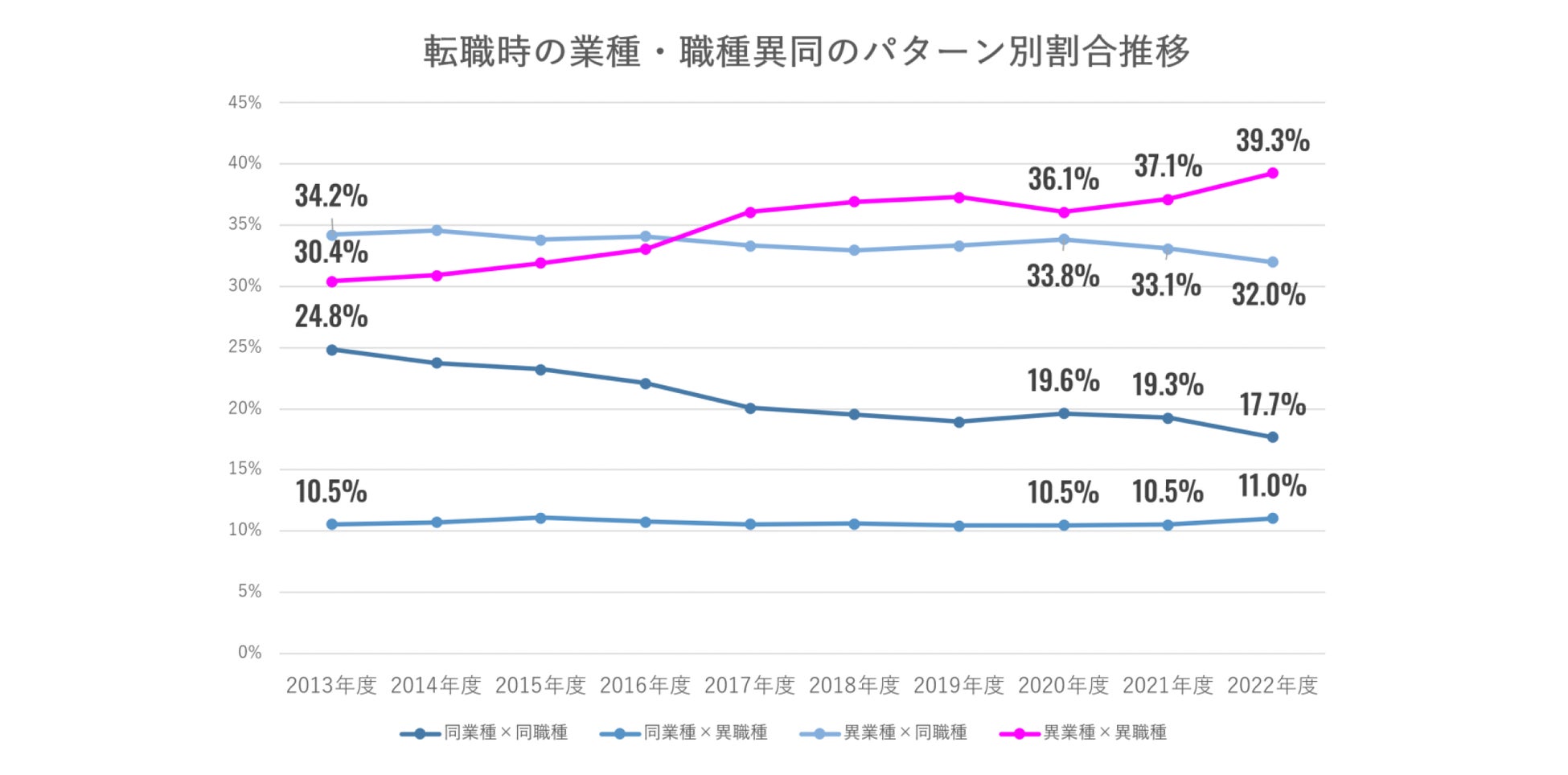 2022年度の転職パターンは「異業種×異職種」が約4割、前年度よりさらに増加