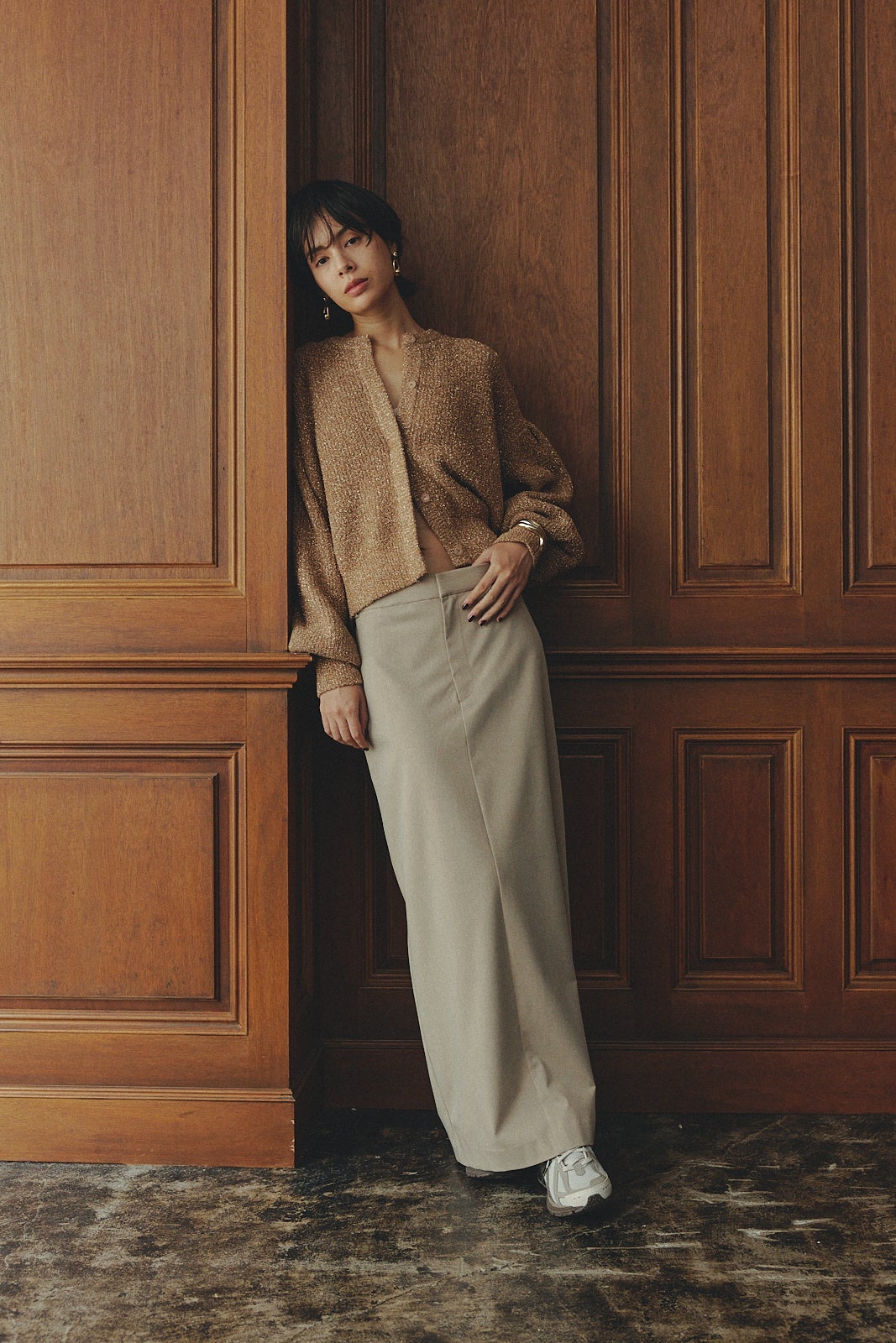今回のコレクションはニュートラルカラーがいっぱいあり、私自身そういったカラーをよく着るので、自分のコーディネートに合わせられそうなアイテムがいっぱいあるなと感じました。コージーなお洋服が多くて、New Balance for emmiのトップスがホリデーぽくて好きでした。裏起毛になっていて暖かく軽く、袖や裾にスリットが入っていてスタイルアップも図れ、カジュアルにもキレイめにも着られるので、一番好きなコーディネートです。お洋服の着心地が良く、普段おしゃれしたいけど着心地が良いものが着たい、というときにすごく活用できそうなアイテムがたくさんありました。