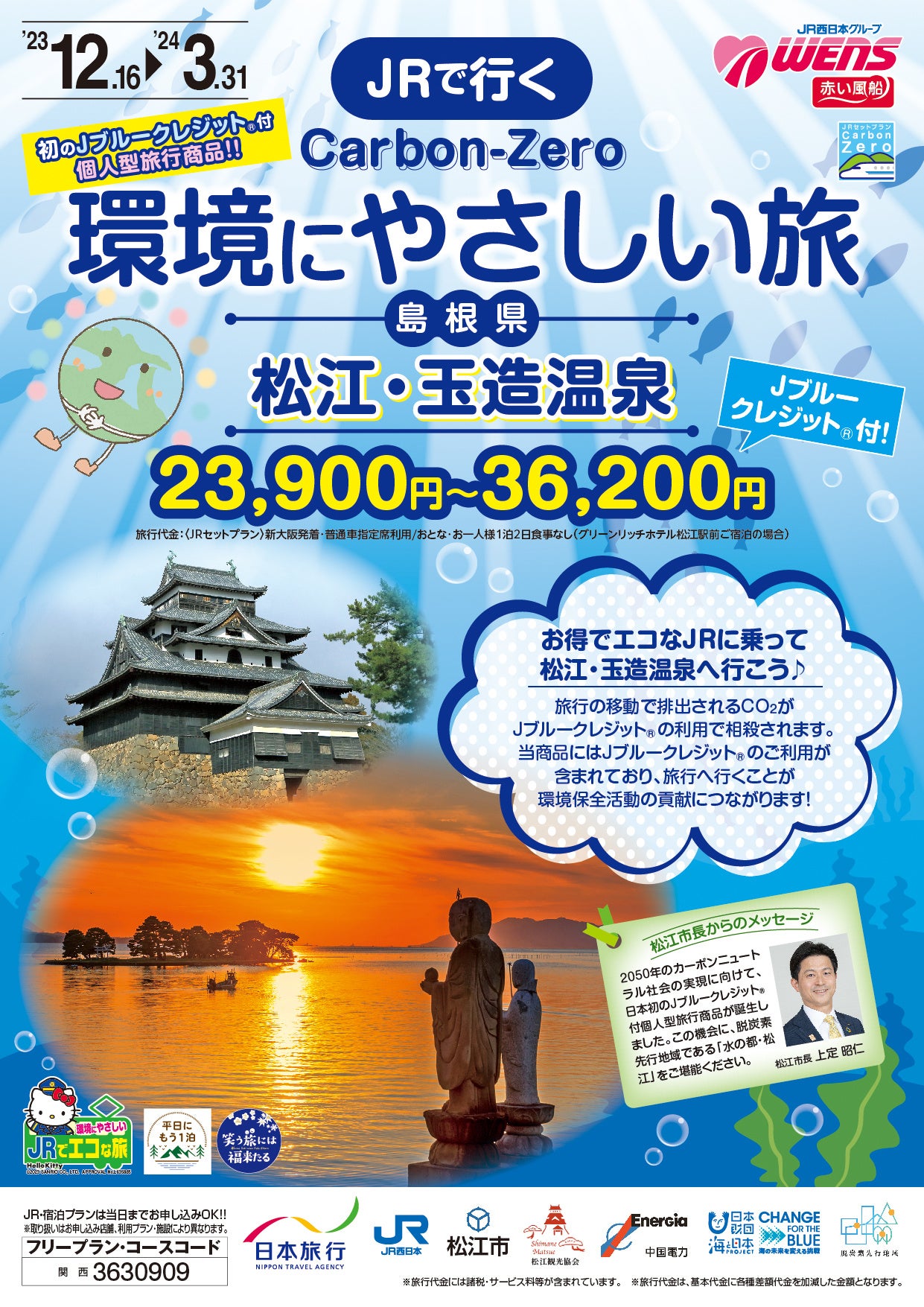 個人型旅行商品として日本初※のJブルークレジットⓇ付商品 鉄道の旅でカーボンオフセット+海洋生態系を保全「JRで行くCarbon-Zero環境にやさしい旅 島根県 松江・玉造温泉」を発売