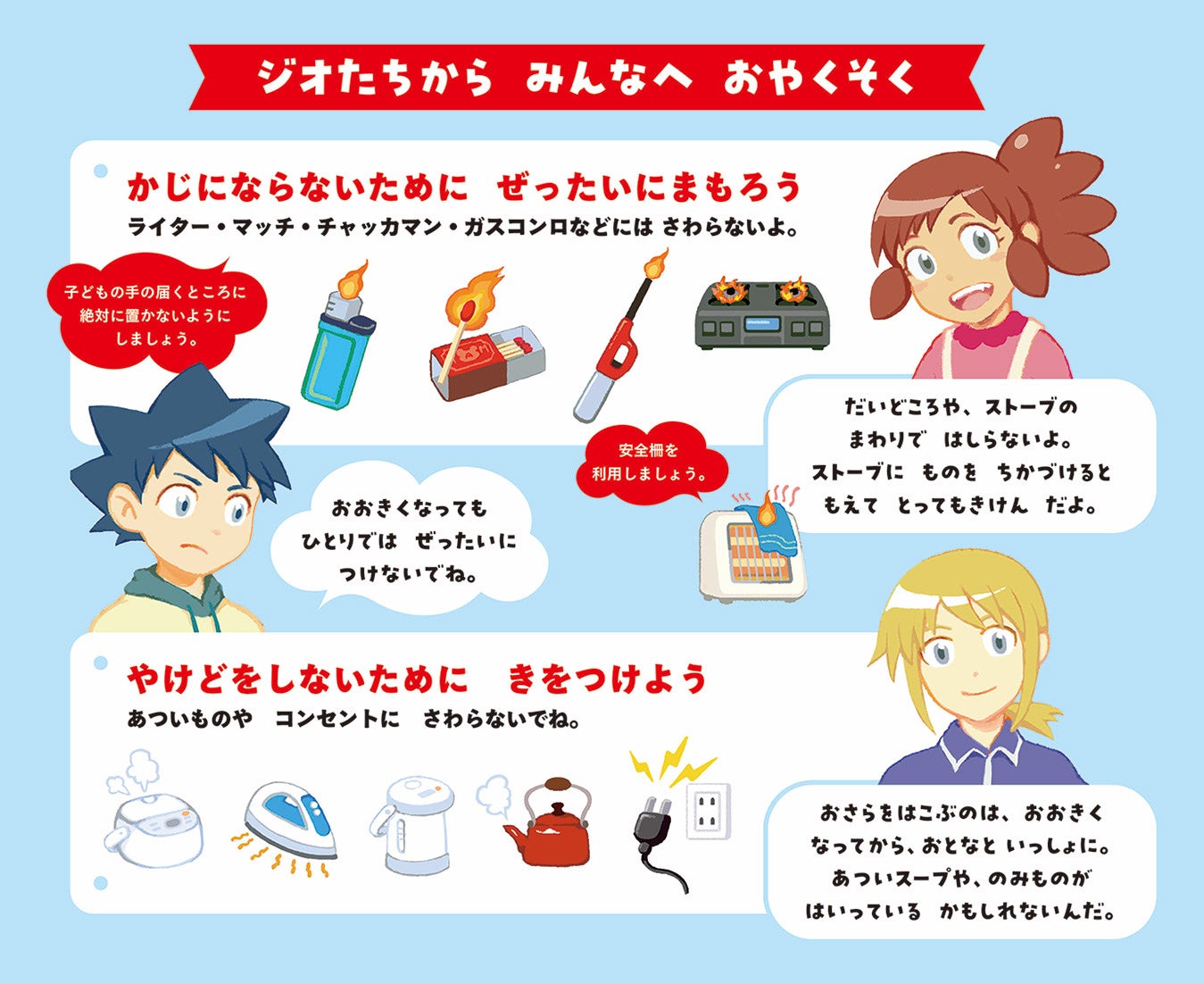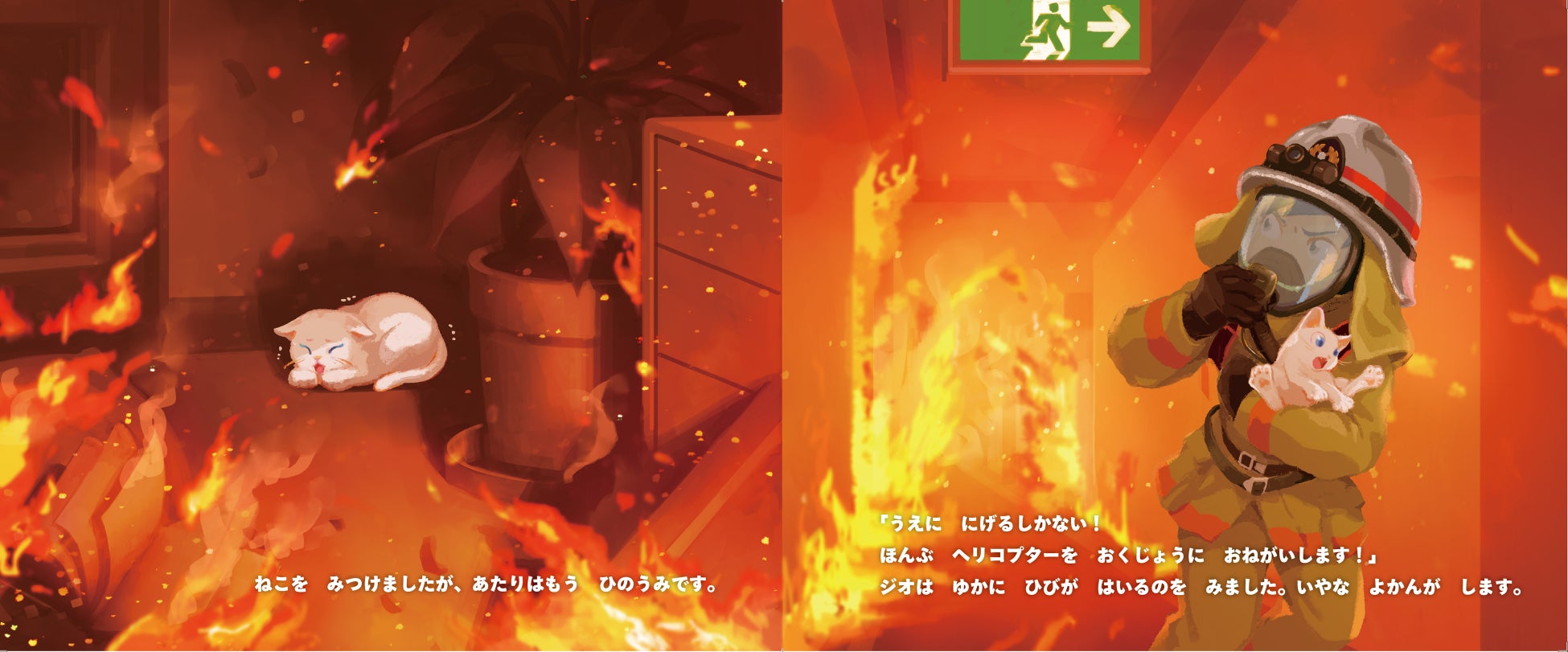 『ジオとしょうぼうしゃのサバイバル』には東京消防庁が協力。“どうして燃えるの?” といった自然科学と、“熱いものにはさわらない”という生活に身近な防災知識の両方を学べる一冊となっています。