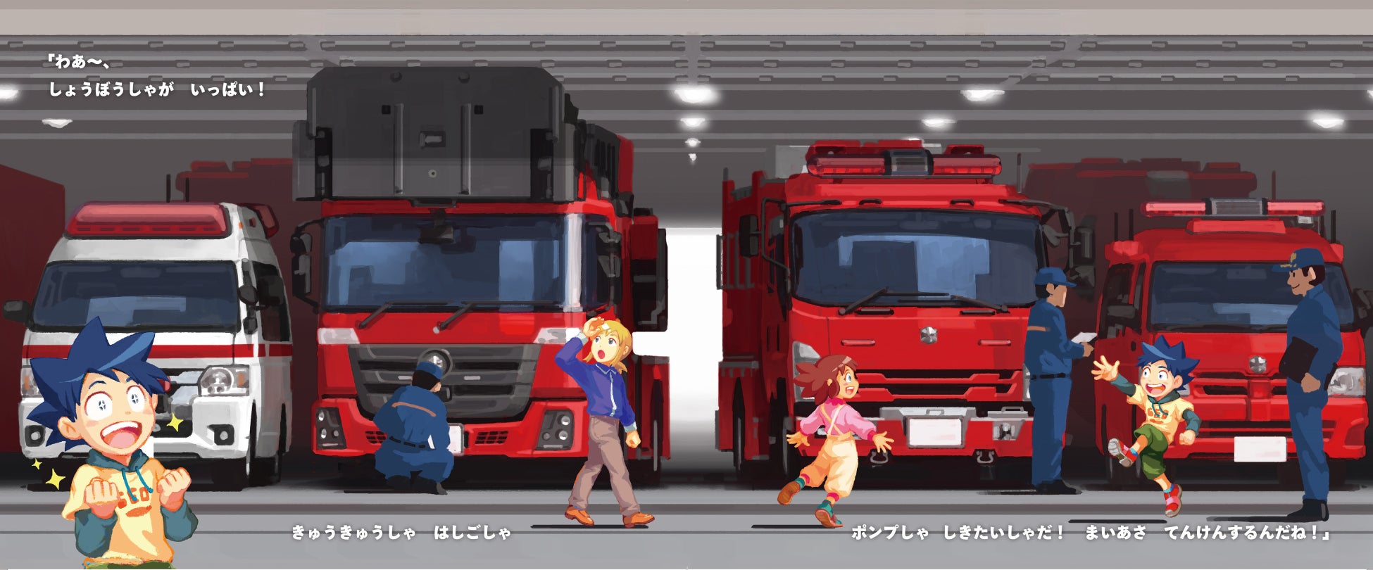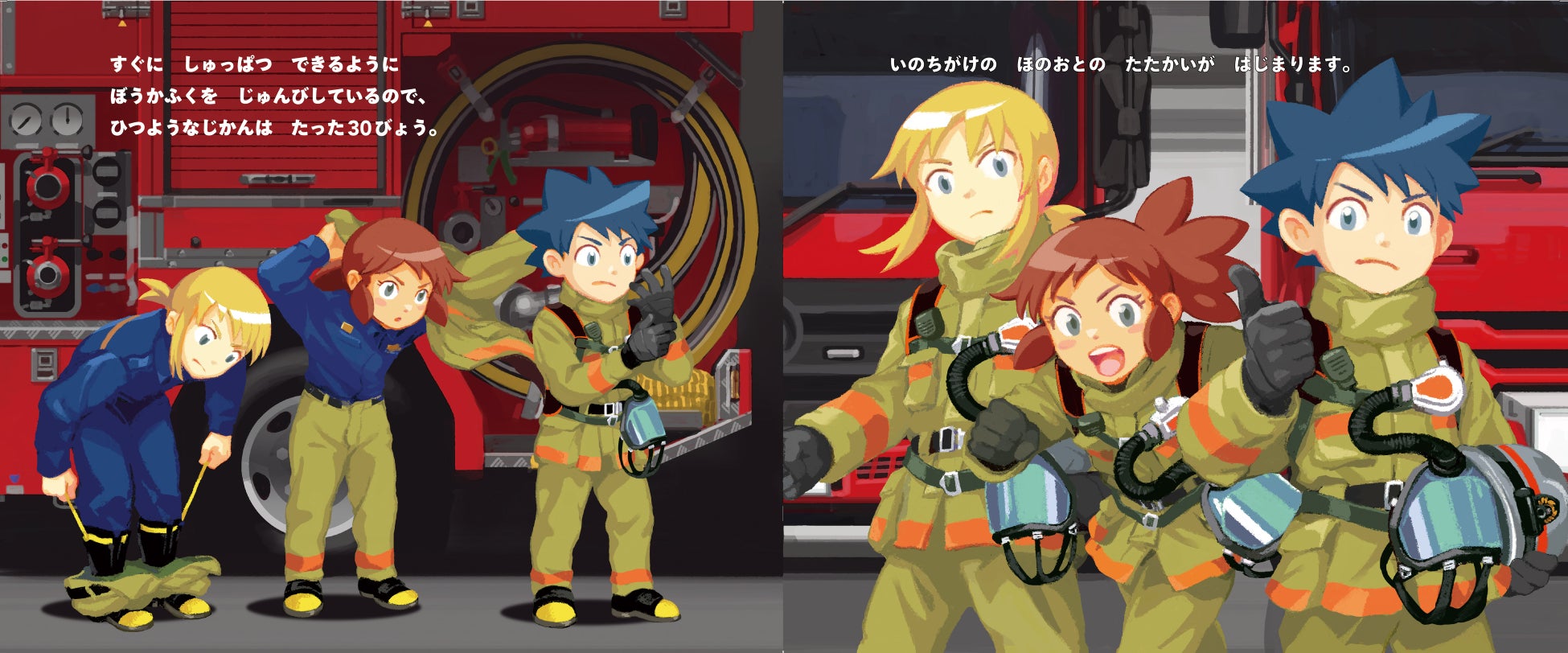 はたらく車が好きな子どもたちはもちろん、テレビアニメでサバイバルを知った子どもたちにもご満足いただける、かっこいい消防車とドキドキの冒険がたっぷり詰まった一冊です。