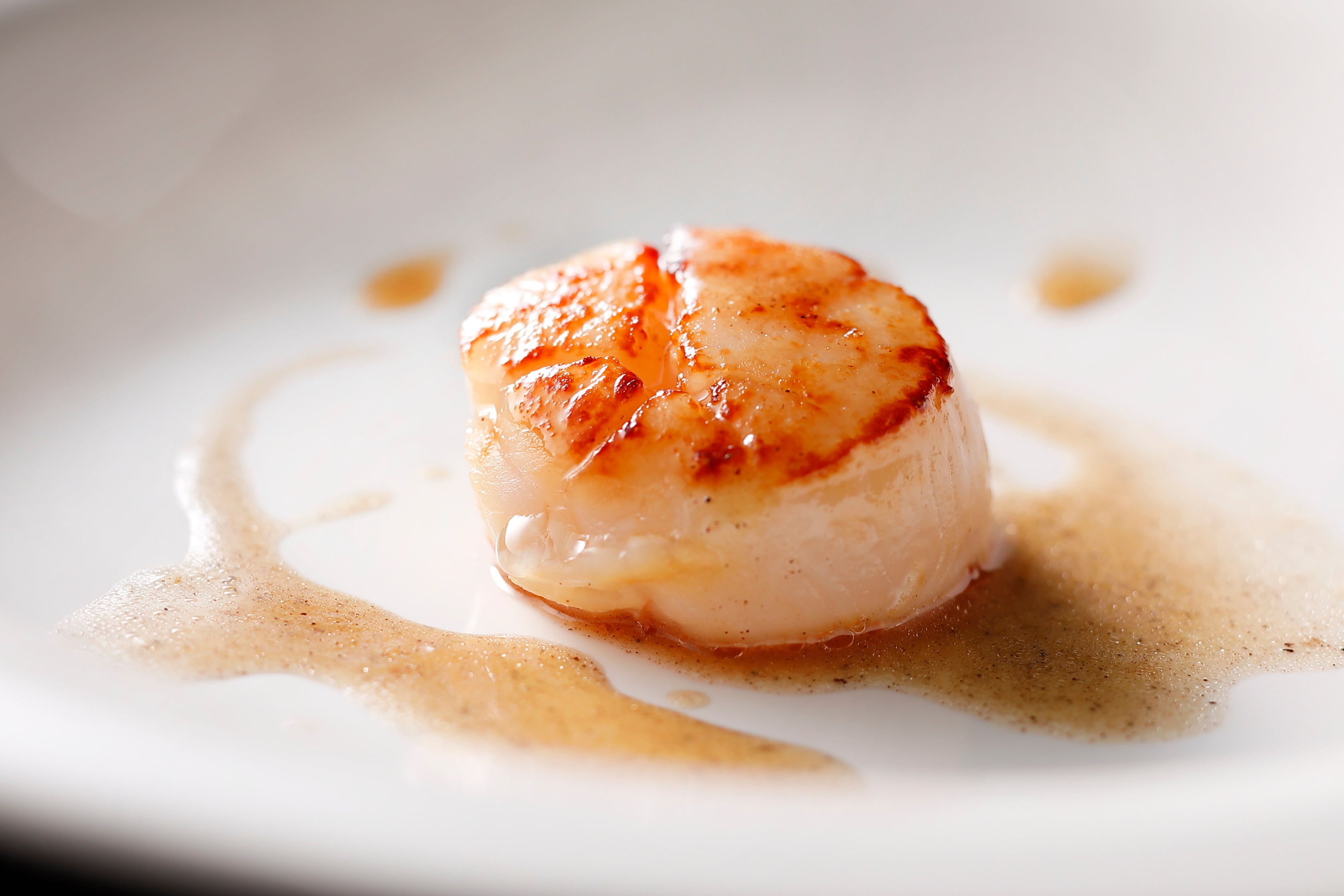 オマール海老、帆立貝柱、真鯛の鉄板焼き