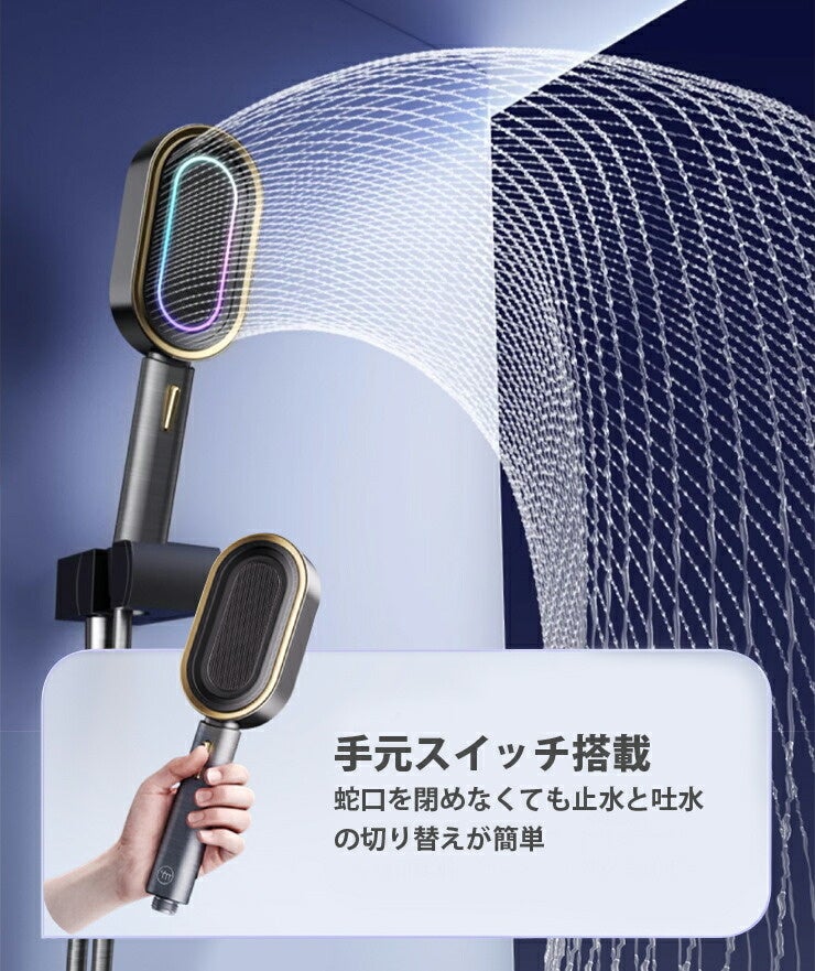 持ち手には手元スイッチ付きで、蛇口を閉めなくても、止水と吐水の切り替えが簡単です。