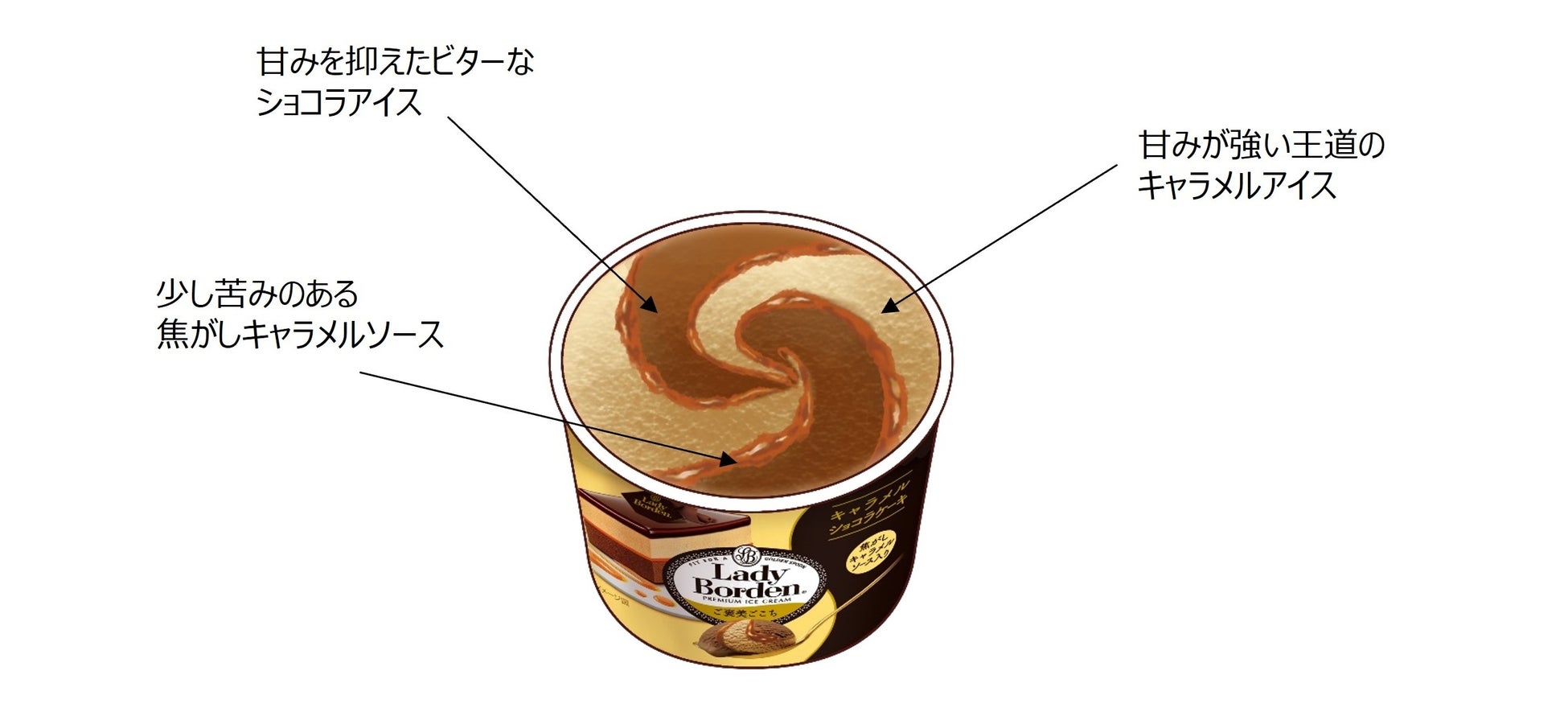 ショコラアイスはキャラメルアイスと一緒に食べた時にバランスよく味わえる様、少し甘味を抑えたビターな味わいにしています。