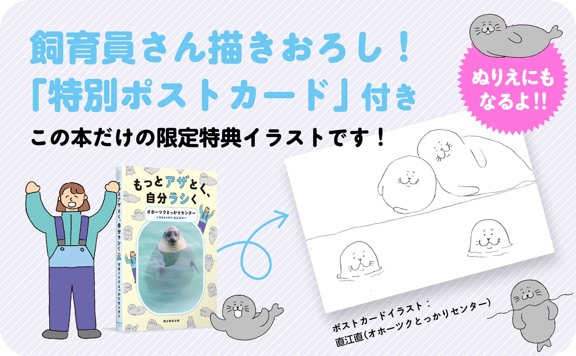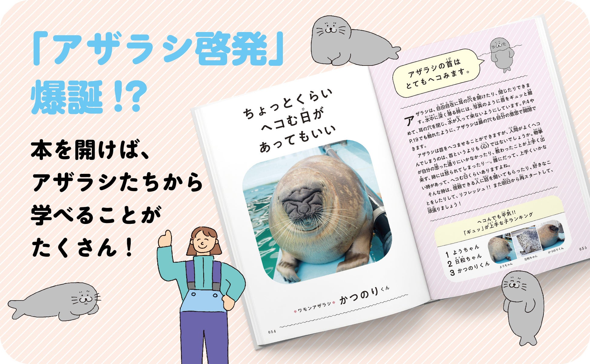 アザラシの生態はもちろん、保護活動の裏話、飼育員ならではの実感がつづられており、動物好きだけでなく、日々をがんばる全ての人の背中をそっと押す構成になっています。