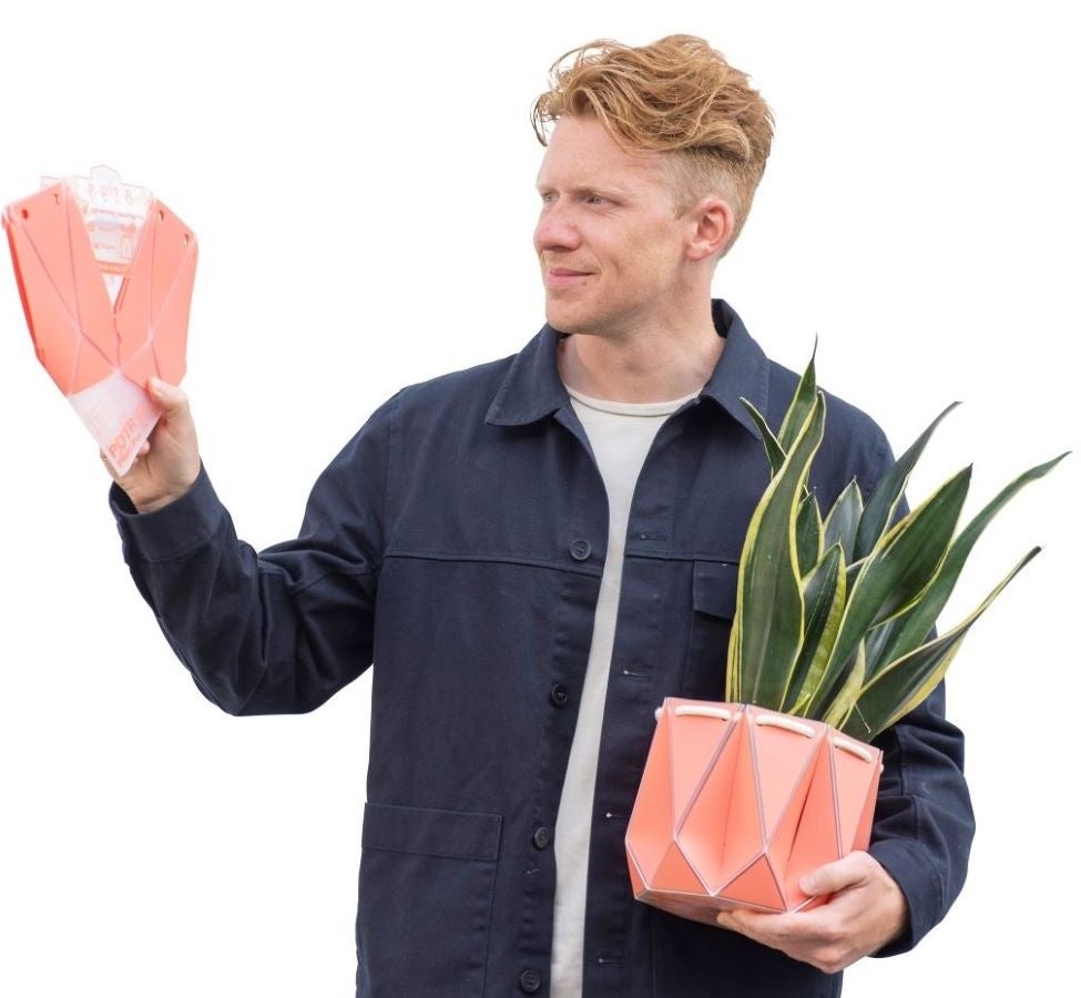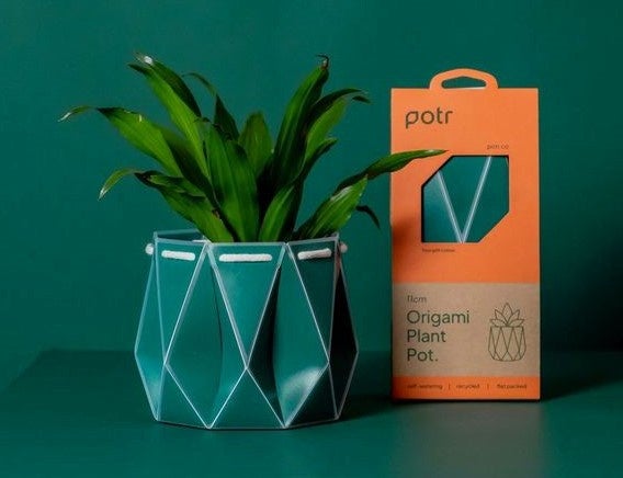 日本の折り紙から着想したプラントポットはコンパクトに畳めて、付属のコードを使って自動で水やりもできます。