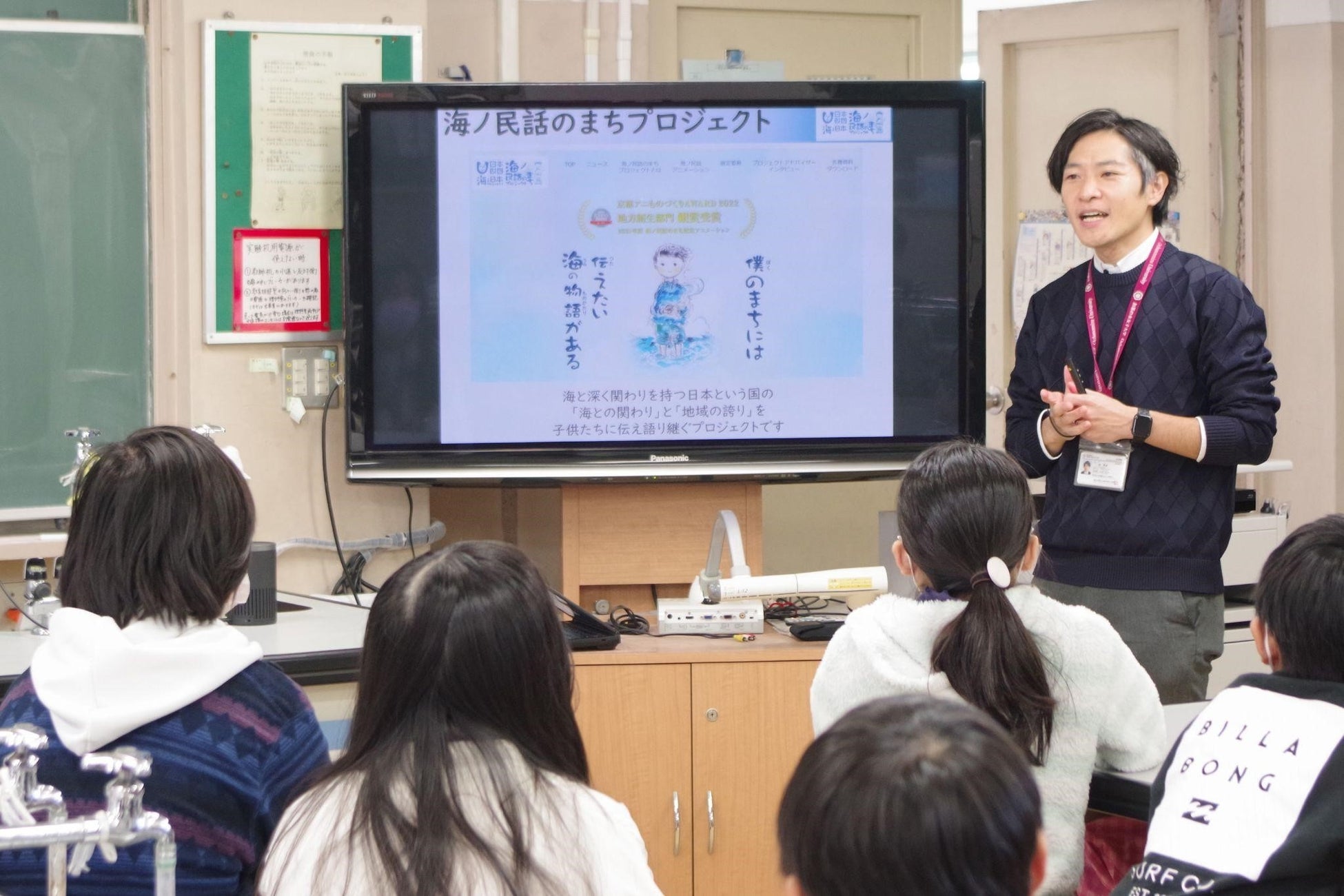 「海ノ民話のまちプロジェクト」は、海と深く関わりを持つ日本という国の「海との関わり」と「地域の誇り」を、子供たちに伝え語り継ぐプロジェクトです。日本中に残された海にまつわる「民話」「伝承」を選定し、
