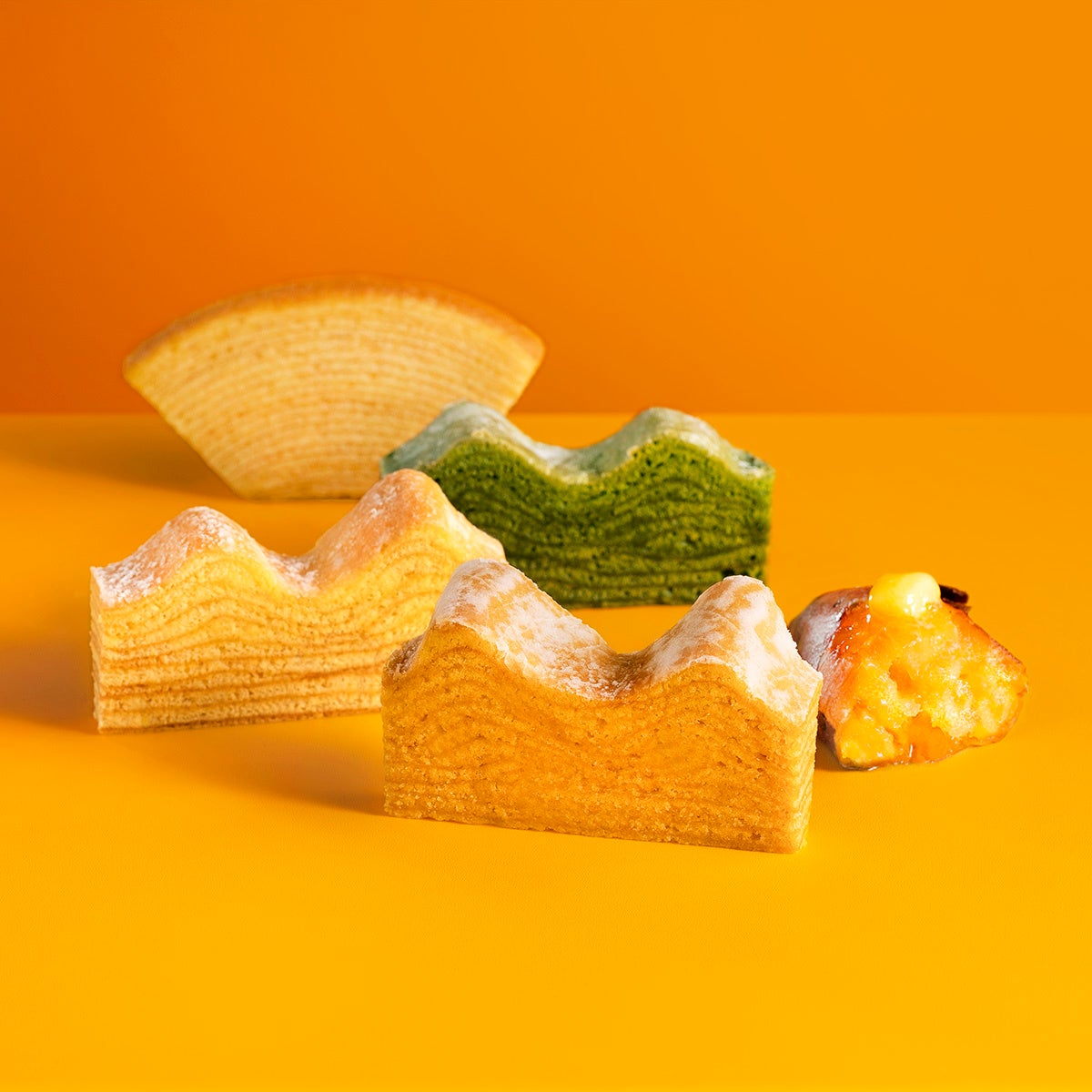 安納芋のペーストを生地に練りこんだ「蜜芋バター」入りバームクーヘンを一度に味わえる、ひとくちサイズのセット。