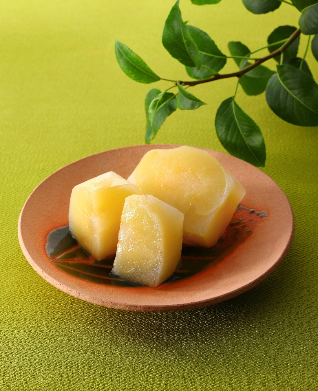 餡村雨に優しい甘さの渋皮栗をはさみ、秋の風情とともに風味豊かに仕上げた棹菓子です。