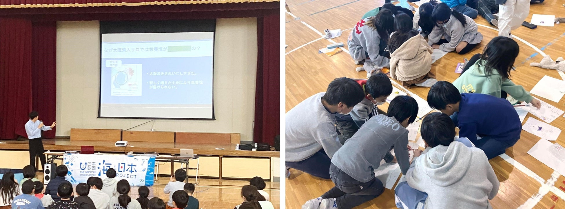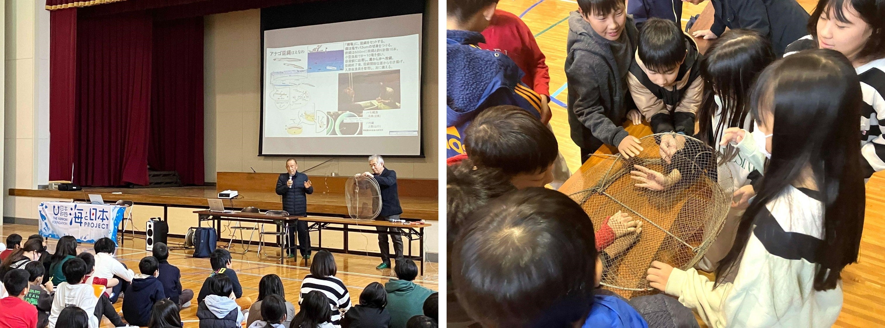 第2回の特別授業では、大阪市立自然史博物館の鍋島靖信さんと 漁師の高田威さんによる、「地元の海と漁業の変化」をテーマとした出前授業です。