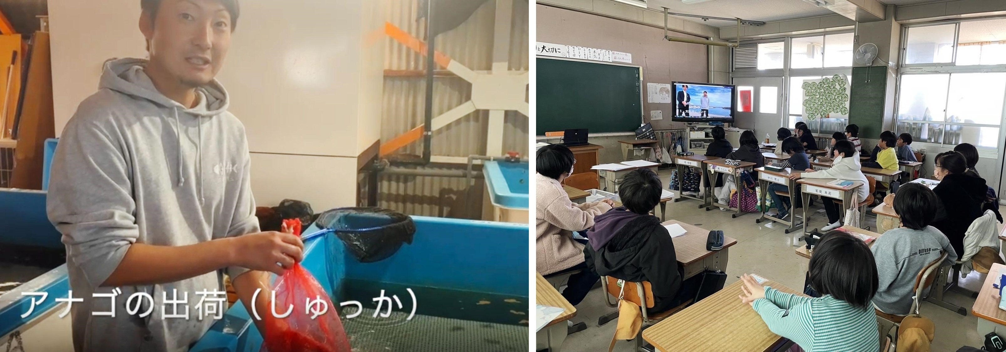 第1回の特別授業では、泉南市にある岡田浦漁港でのインタビューを行い、動画にまとめて、全体で鑑賞しました。