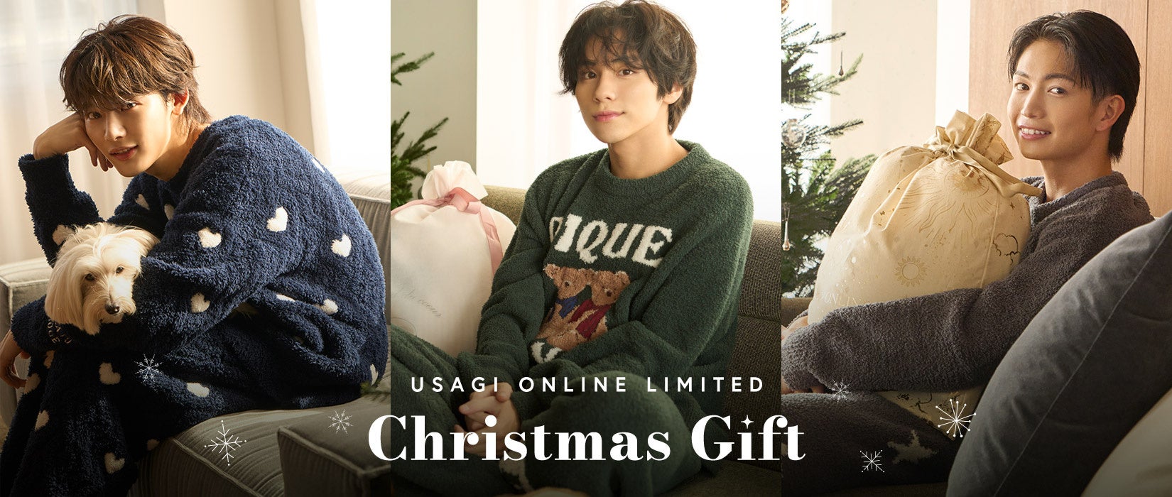 アーティストのNOA(ノア)氏、俳優の山下幸輝(やましたこうき)氏・綱啓永(つなけいと)氏を起用いたします。「もし彼女にクリスマスプレゼントを贈るなら」というテーマでセレクトしたUSAGI ONLINEでしか買えない、特別なクリスマスギフトセットを11月30日(木)、12月4日(月)、12月6日(水)に販売いたします。本クリスマスギフトセットを購入された方には、本人のメッセージ入りカードをプレゼントいたします。