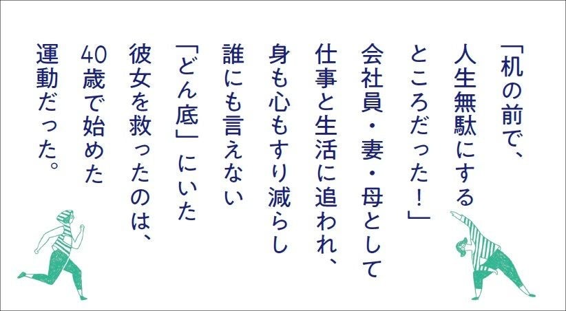 体力の衰えを実感し、一方で育児や仕事のストレスが最高潮に達するのが40歳。未来がすべて不安に思えるそんな40歳で、著者はゼロから運動を始める。自分にできることを続ける楽しさやコツを、少しずつ見出していく姿に、優しく励まされます。