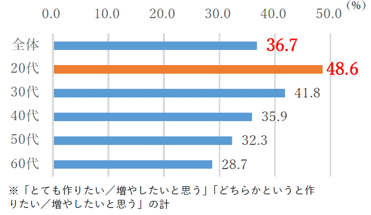 「飲食店(バーや小料理屋など)で会えばあいさつしたり、会話したりするような知り合いを作りたい/増やしたいと思う」36.7%、20代では48.6%
