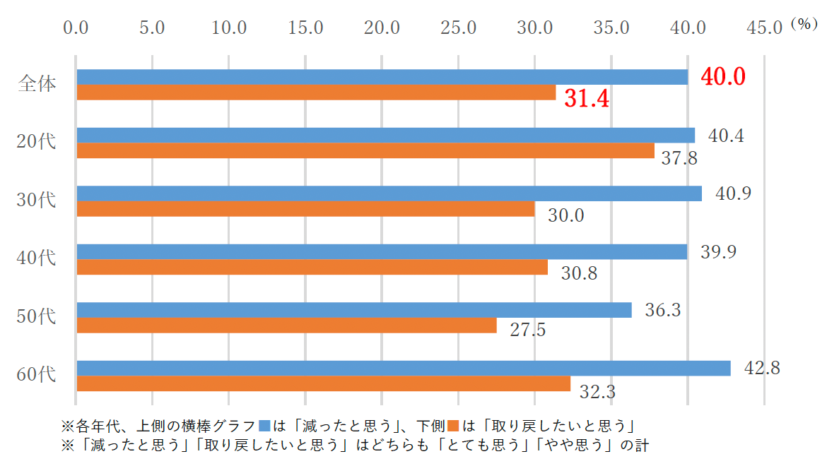 ■「気軽に話す相手や集まれる場所がコロナ禍を経て減ったと思う」40.0%、「取り戻したいと思う」31.4%