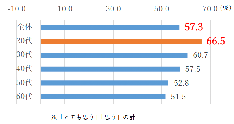 ■「気軽に顔を出せるようなグループに新たに参加したいと考えた場合、趣味が同じ人が多い場所がいいと思う」57.3%、20代では66.5%