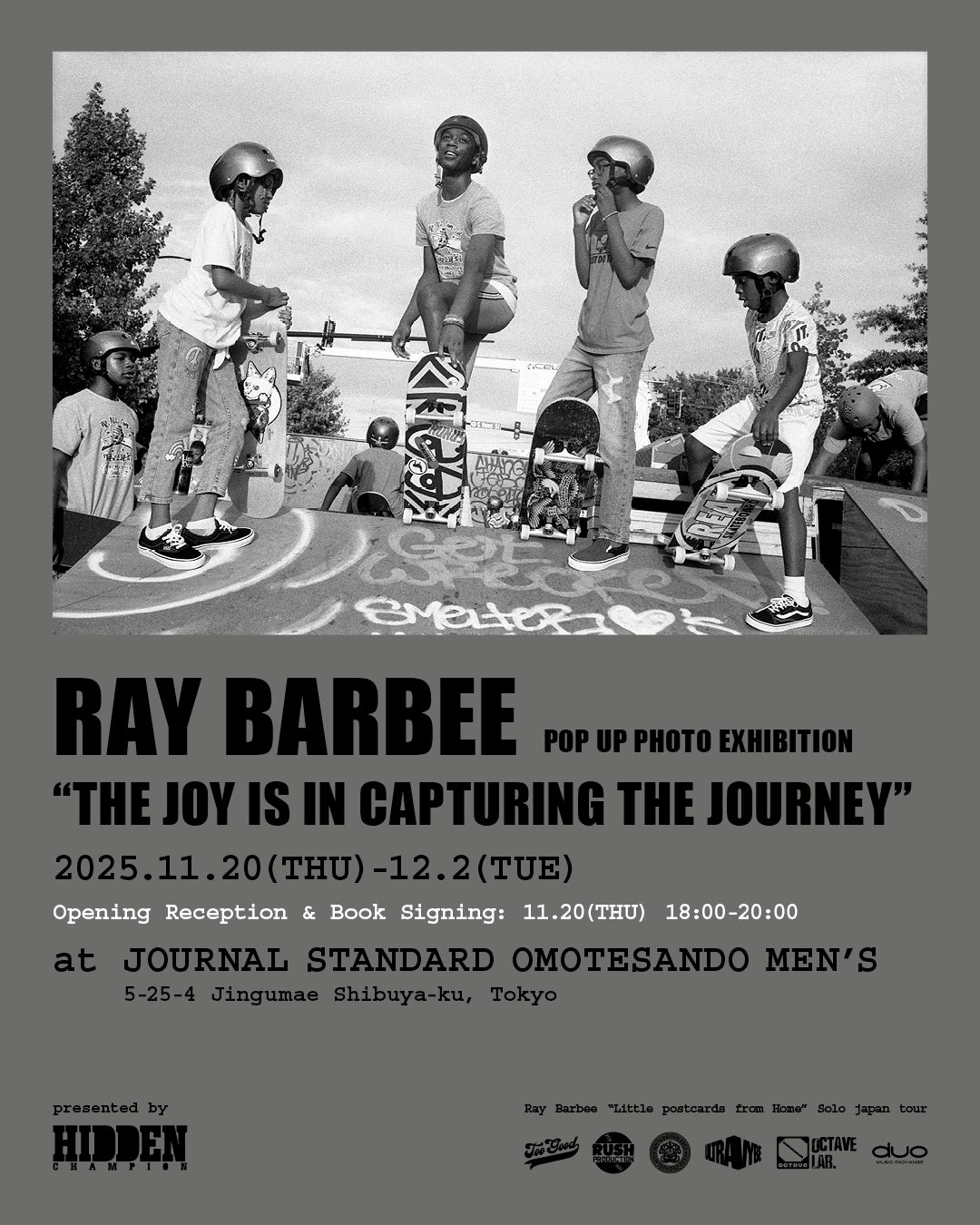 『Little Postcards From Home (EP)』をリリースし、2025年11月21日から12月1日までジャパンツアーのために来日するレイ・バービー。彼はレジェンド・スケーター、ミュージシャンとして知られているが、今年5月には、過去16年間に撮りためた写真をまとめた写真集『THE JOY IS IN CAPTURING THE JOURNEY』をSUPER LABOより出版している。