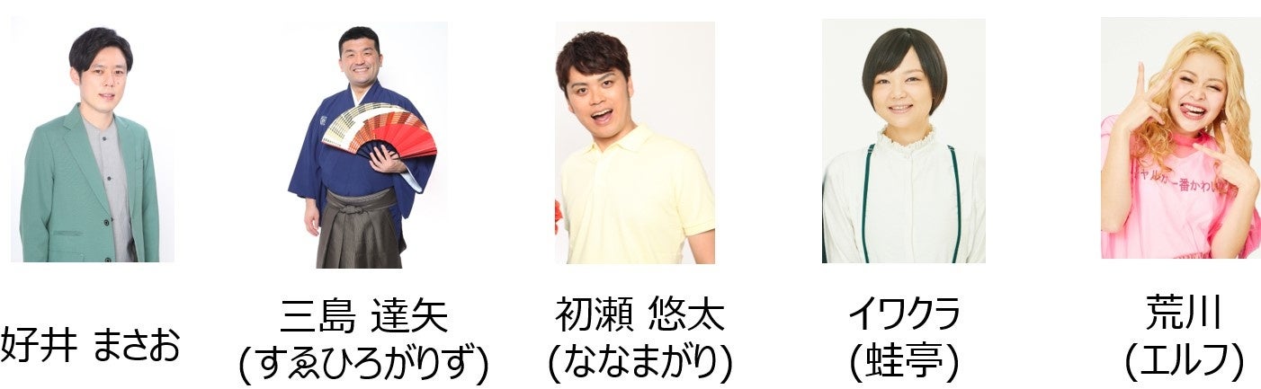 トマト漫才師 NON STYLE・石田明、囲碁将棋・文田大介、GAG・ひろゆき、好井まさお、すゑひろがりず・三島達矢、ななまがり・初瀬悠太、蛙亭・イワクラ、エルフ・荒川