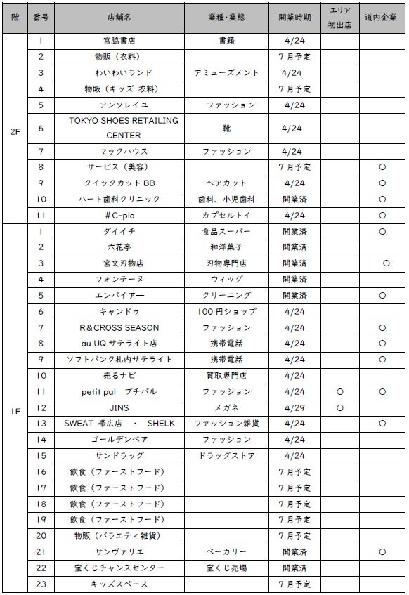 「フレスポスズランプラザ」第1期オープン(ニュースリリース)