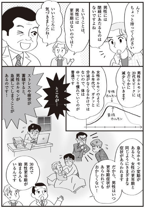 更年期の症状は、性別に関わらず、どんな人にも現れる可能性があります。女性だけのものと考えるのではなく、男女ともに正しく理解する必要があります。そのメカニズムや最新の治療法を知り、更年期の知識を正しくアップデートするための書籍『マンガでわかる!男女で知っておきたい更年期』(https://www.amazon.co.jp/dp/4074561484)を発売いたしました。
