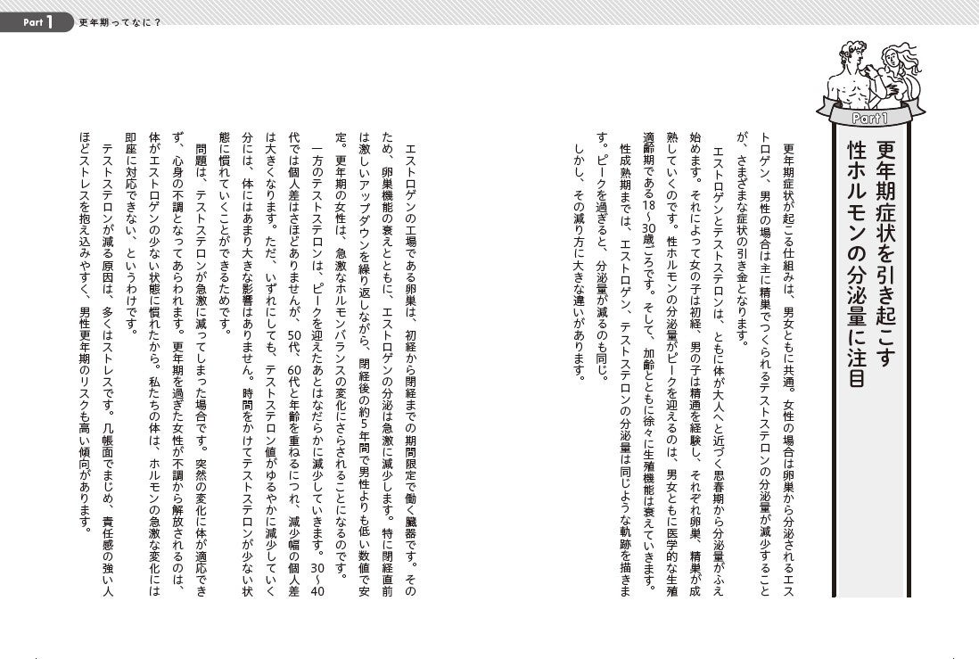男女の更年期のエキスパートである専門医による解説がマンガやイラストで描かれているので、やさしく知ることができ、どこから読みはじめてもすぐに役立つ一冊です。