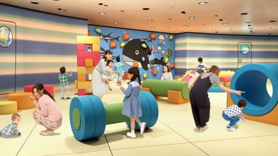 お子さまが楽しめるキッズパーク(ボルダリング壁面、ウレタン製遊具)を新設。潜水艦をモチーフにした室内にお子さまは水兵さんの衣装に着替え、フォトパネルの前で記念撮影。