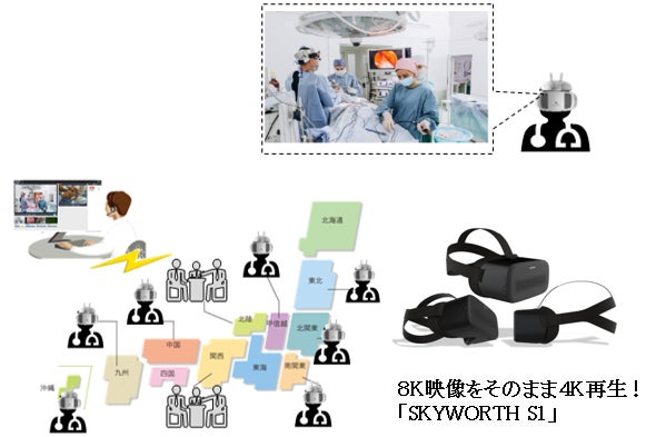 運用は、講師用として教材動画のコンテンツのアップロード、講義の登録、スケジュール管理、受講者用として受講の予約申し込み、スケジュール管理、VR用コンテンツのダウンロードといった一連の講義実施をサポートする専用プラットフォームを通じて行われます。これらに加え、講義システムと、8Kの高画質で作成された映像をそのまま4K映像で再生できる一体型VRゴーグル「SKYWORTH S1(スカイワース エスワン)」の10台を基本構成として、200万円(税別)から導入が可能です*。