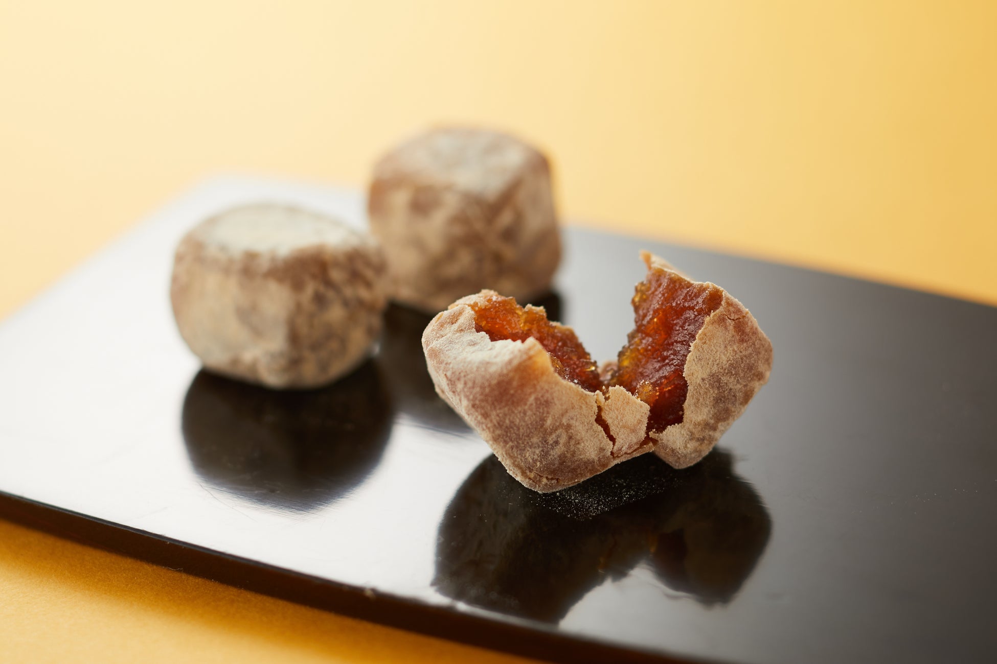 和栗と砂糖だけで作った栗きんとんの芯にスパイスの香りと酸味が特徴のビールとカカオの餡を忍ばせました。合わせて食べると豊かな香りが複雑に絡み合い、新しいおいしさをお楽しみいただけます。