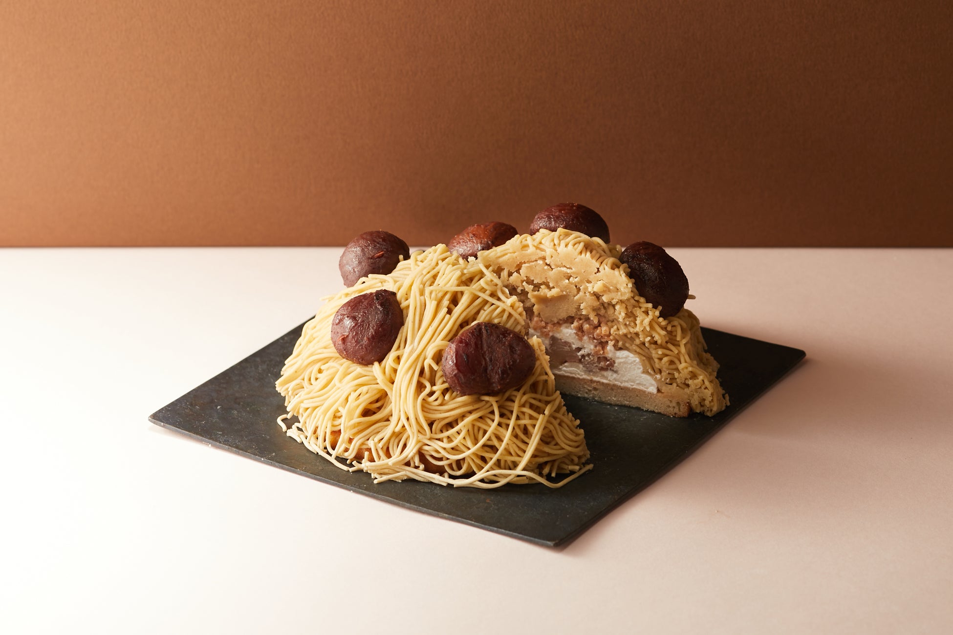 チーズケーキ専門店〈Namery Rosted〉からはたっぷりの栗のクリームに、中にはさっぱりとした味わいの滑らかなチーズクリームが入ったモンブラン。ごろっとした大きな和栗も入ってます。