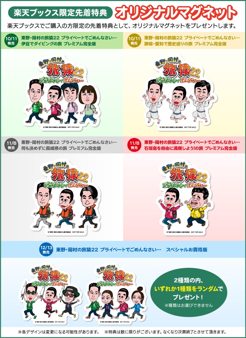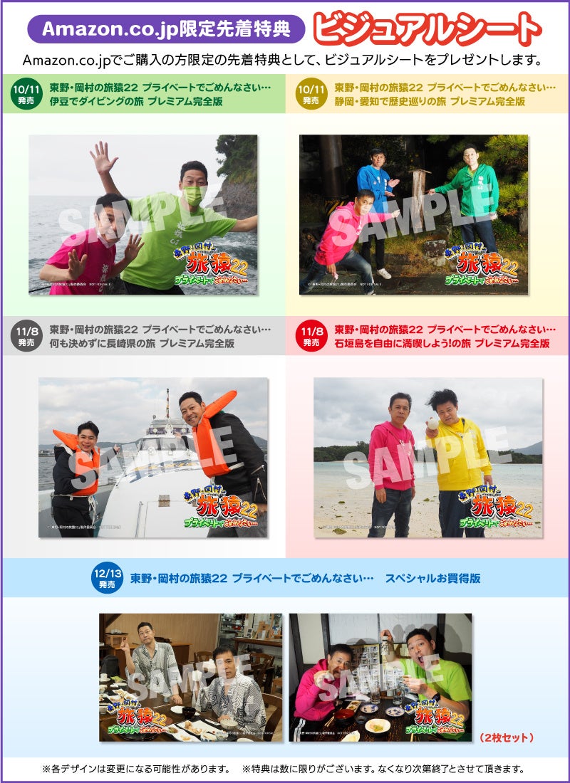 <旅猿22DVDシリーズ最新作>東野・岡村の旅猿22 プライベートでごめんなさい…プレミアム完全版 DVD発売決定!10月11日(水)より発売開始!