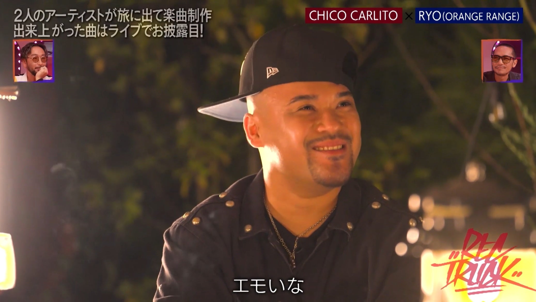 また、楽曲制作の山場を超えた2人が語りあう場面では、RYOがORANGE RANGEのデビュー当時の思いを告白。「ORANGE RANGEが来年で結成25年になるけど、挑戦心は捨てたくなくて、色々トライはしてた」と語ったRYOに、CHICO CARLITOはORANGE RANGEのデビュー当時について、「アンダーグラウンドのHIP HOPの人たちからは嫌な言われ方をした?」と疑問をぶつけます。これに対してRYOは「笑われてるレベルだと俺は思ってた」と率直な思いを明かし、「それでもORANGE RANGEの色を突破していこうと思った。だから続けた、“らしさ”を」と回顧。「今は面白いと言ってくれる人が多くなった」「自分たちなりにどのくらいまでおふざけでやっていいか、バランスが見えてきた」と語ったRYOは「(嘲笑する声が)当時は聞こえてないと言ったら嘘だった」「『笑われてるな』と思っていて、心のどこかで悔しかった」と打ち明けました。RYOの言葉を聞き、CHICO CARLITOは「俺らが小・中学校の世代は、ORANGE RANGEを聴いて育った。ラップの練習に入るのがORANGE RANGEだった」と振り返ると、「小学校から聴いてた人と一緒に今回曲を作って、なんなら『RYOさん、もうちょっとこうして』とか。『俺がORANGE RANGEのRYO に口出ししてるわ』って思ったら、エモいな」と嬉しそうに語りました。