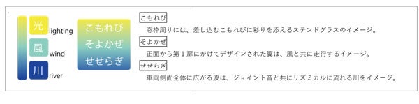 大阪最北端の駅である「妙見口駅」に向かう豊かな自然を象徴とする路線を「光・風・川」をコンセプトに表現しています。風景への調和を重んじながらも、新車両導入の新しい風を、「金・銀・銅」と「茜(あかね)色」「藍(あい)色」の色味を丁寧に用いることで、日々ご利用いただく皆様にとって「彩り」をもたらすものであるよう願いを込めてデザインしました。