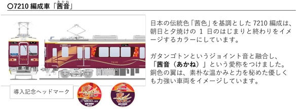 山下-妙見口駅間 折り返し専用車両7200系 2両編成車を導入します ~ラッピング列車「茜音(あかね)」「藍彩(あい)」 の運行開始と関連イベント実施について~