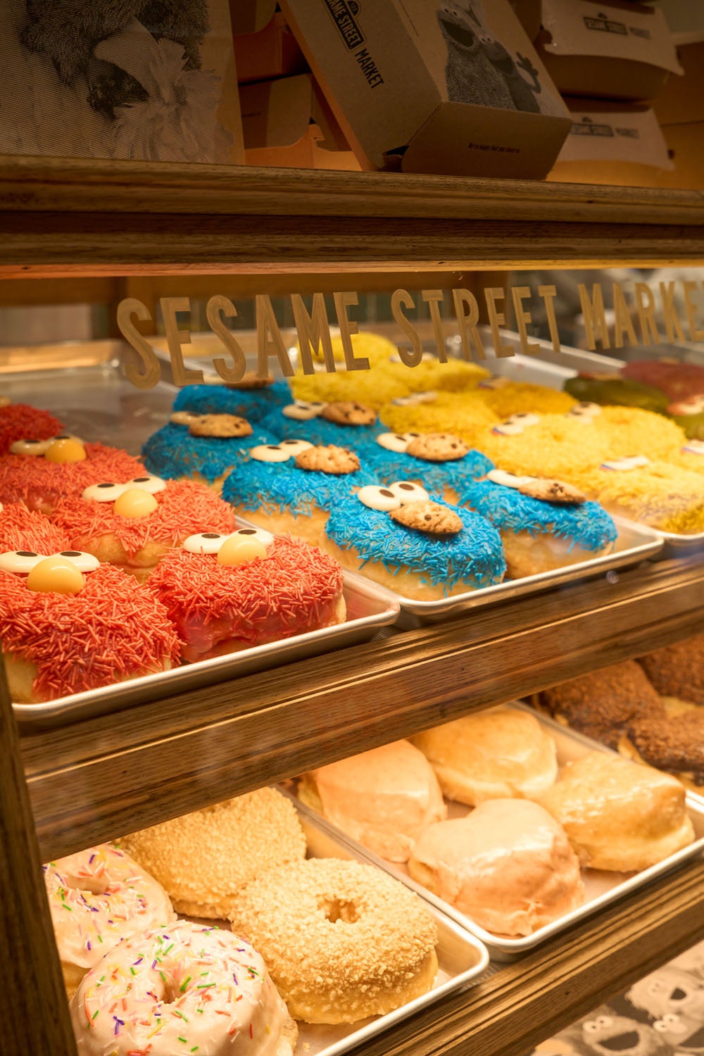 特に店内奥、セサミストリートに登場する食料品や日用品を販売している店舗「HOOPER’S STORE(フーパーズストア)」と外のテーブルセットは再現性も高く、フォトスポットとしてもおすすめ。