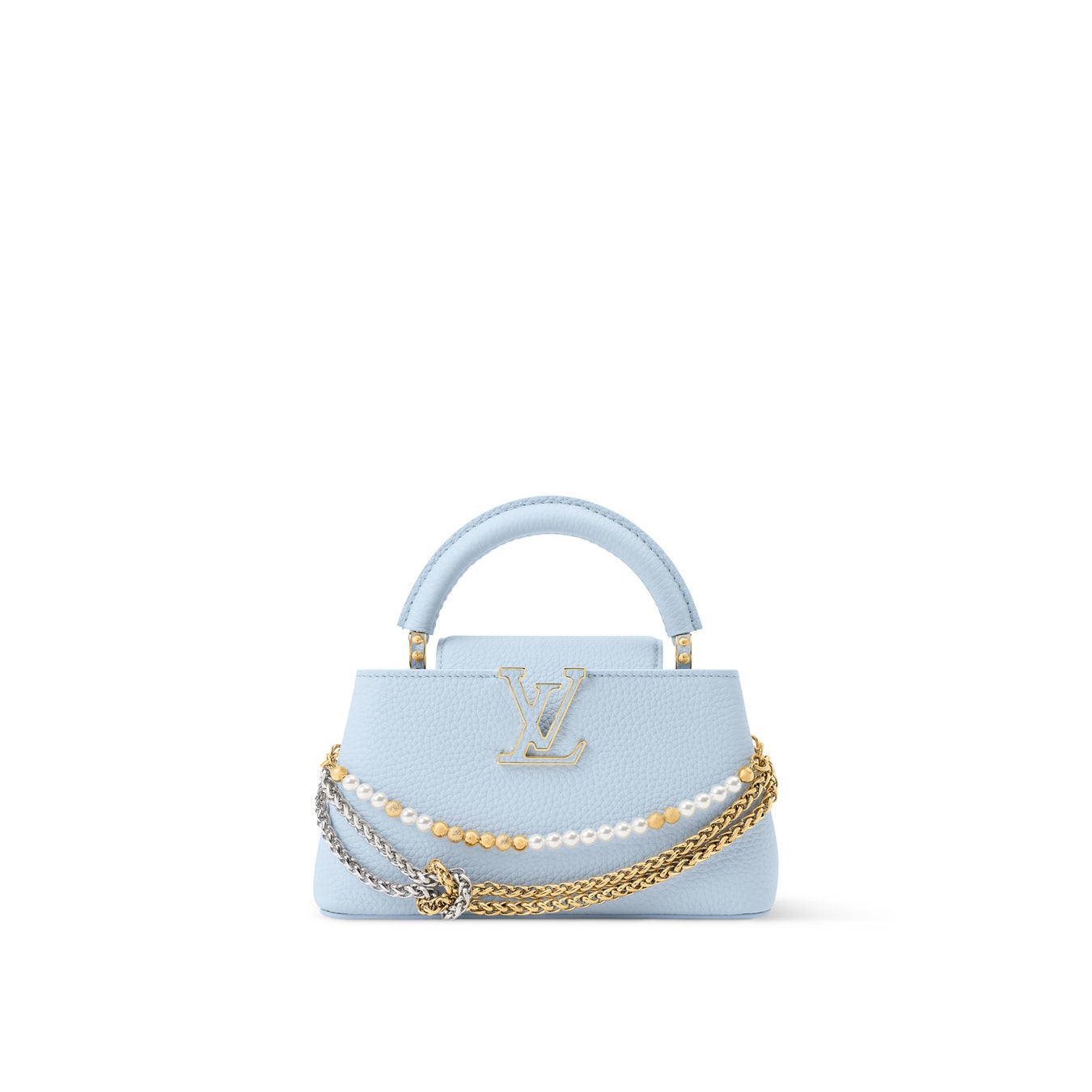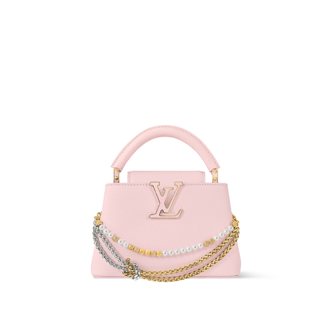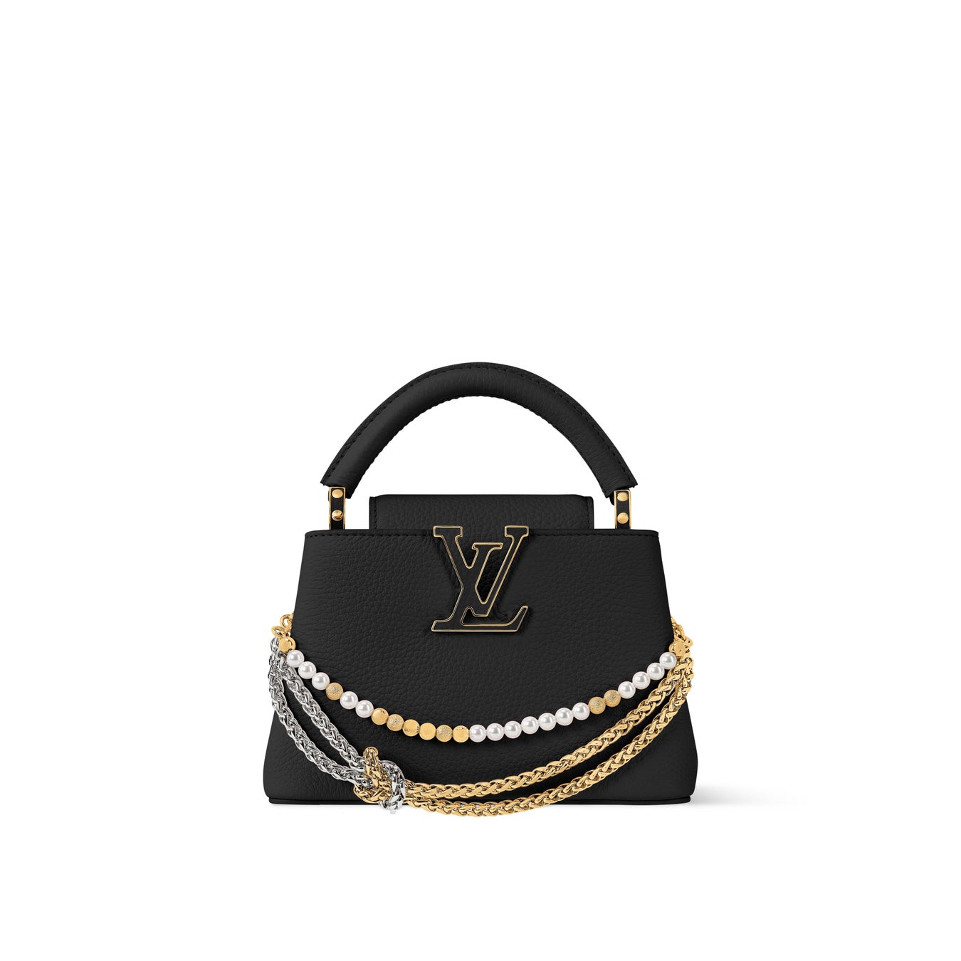 ルイ·ヴィトンは、装飾的なバイカラーチェーンと、メゾンのサヴォアフェール(匠の技)を讃える同系色のLV イニシャルをあしらった、アイコンバッグ「カプシーヌ」の新作を発売しました。